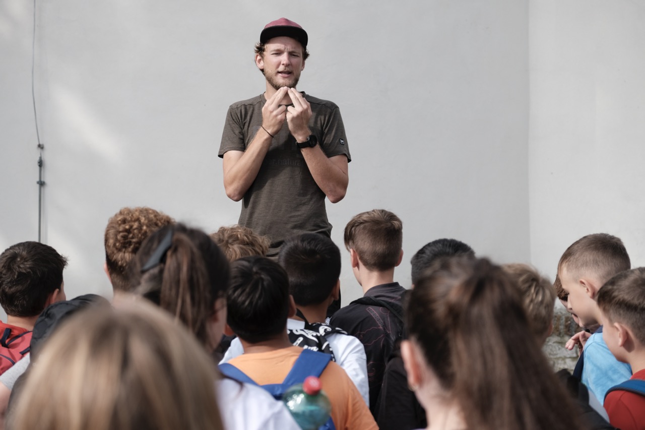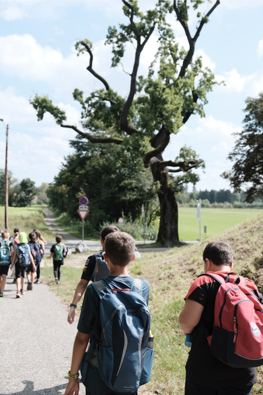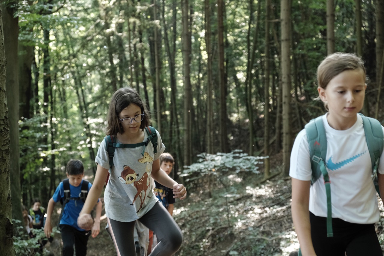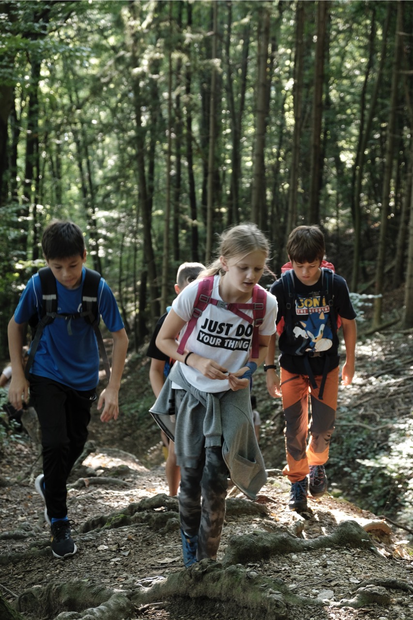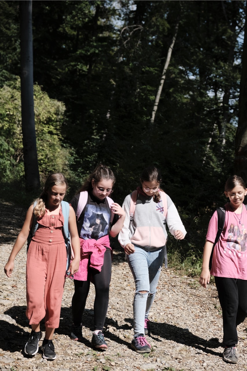 Der Wandertag führte die 1. Klassen über St. Johann und Paul zum Schloss St. Martin. Auf dem Weg lagen zwei Spielplätze, die viel Gelegenheit zum Spielen, Jausnen und Kennenlernen boten.