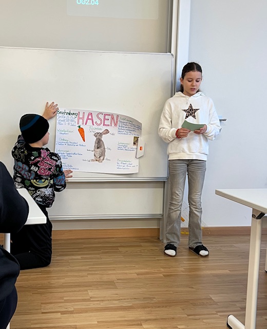 Ein Highlight jagte das nächste bei den Tierreferaten der fünf ersten Klassen. Die Schüler:innen erarbeiteten fächerübergreifend in den Fächern Biologie, Deutsch und Digitale Grundbildung  Referate zu ihrem Tieblingstier. Die Vorträge wurden durch Plakate und wahlweise auch durch PowerPoint-Präsentationen ergänzt.