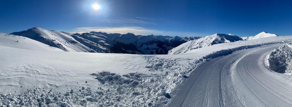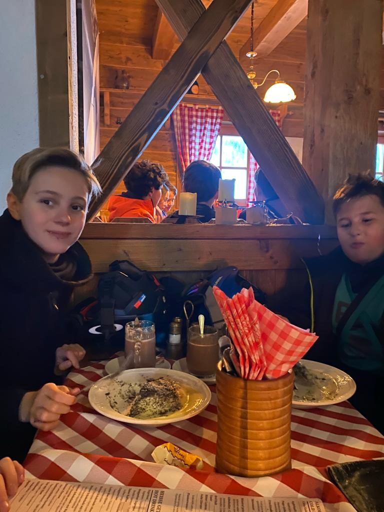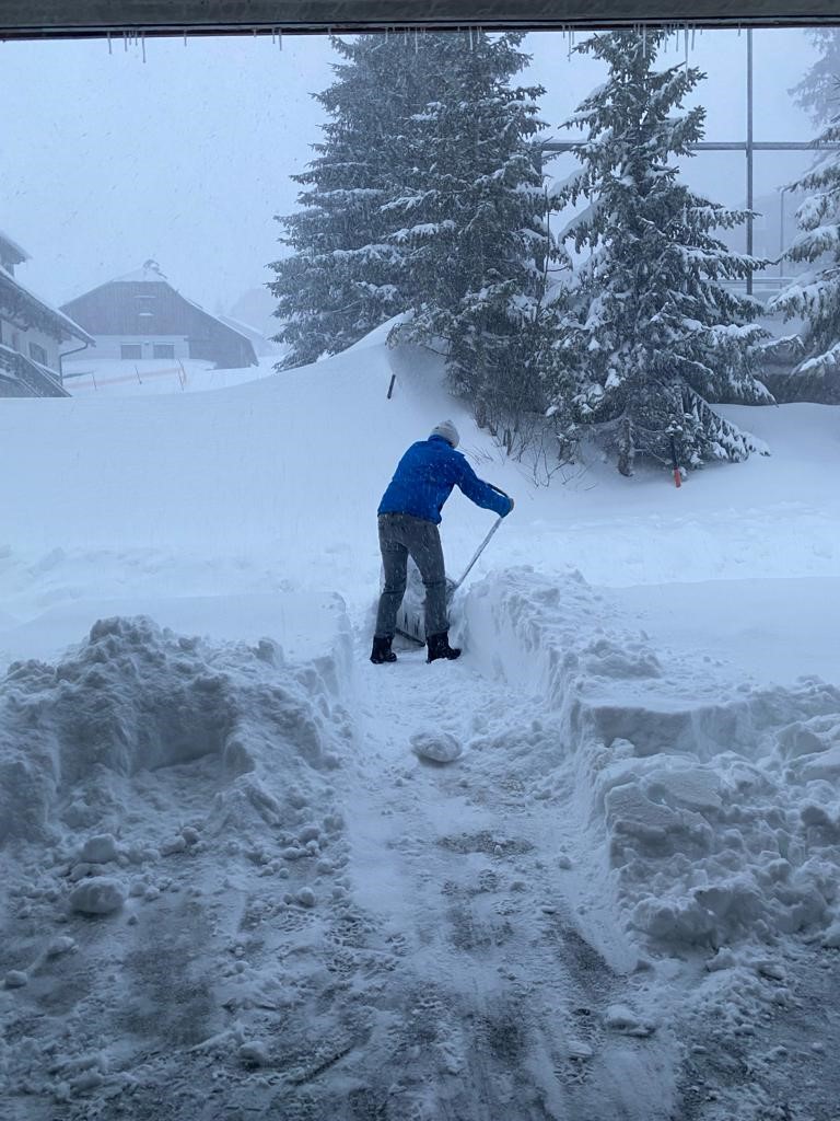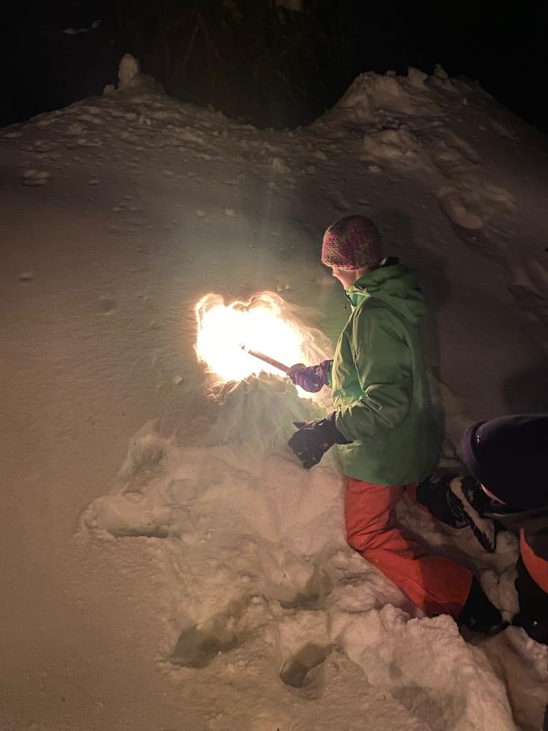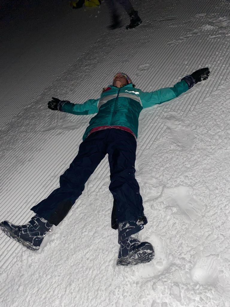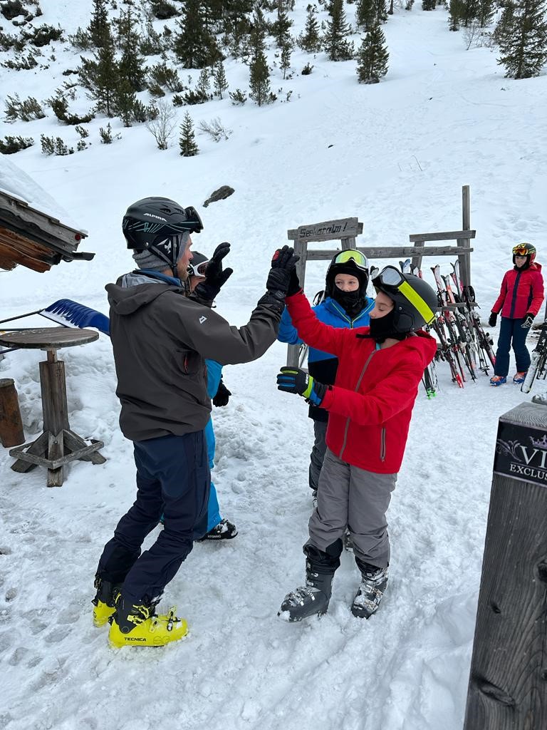 In den ersten Tagen gab es auch beste Wetterbedingungen – ohne Wind. Inzwischen können alle mit dem Sessellift fahren und auch unsere Anfänger kurven schon wie die Profis die Pisten hinunter. Abends gibt es dann Lawinenkunde und Fackelwanderung.