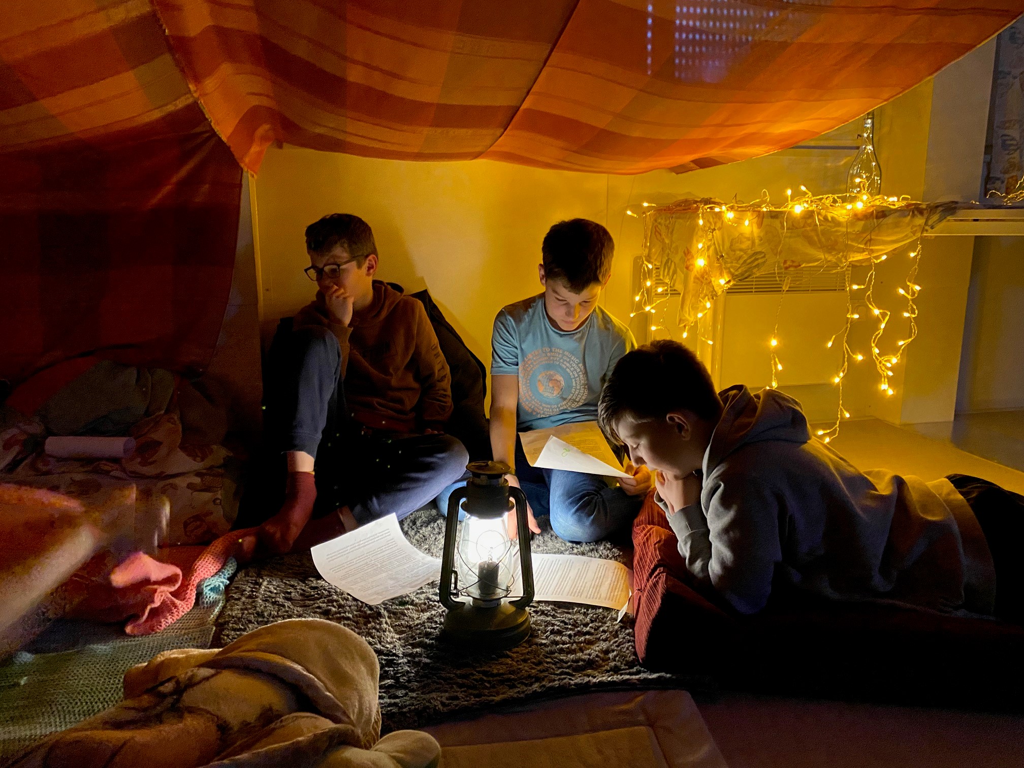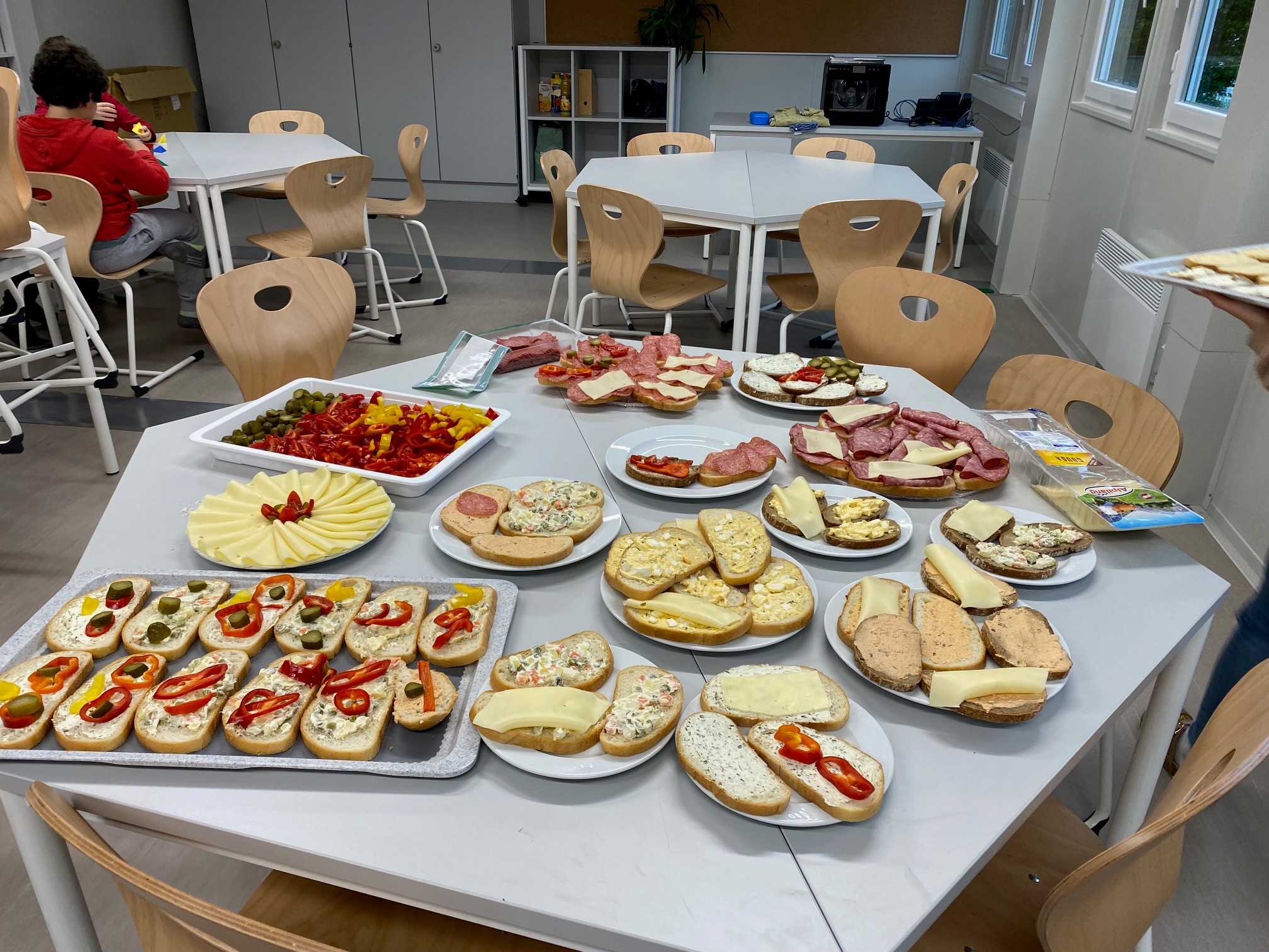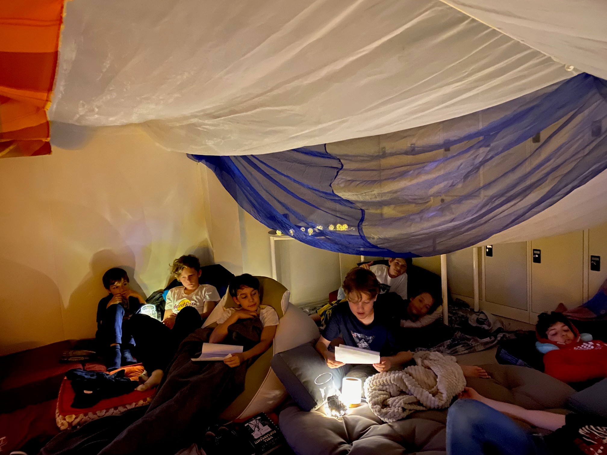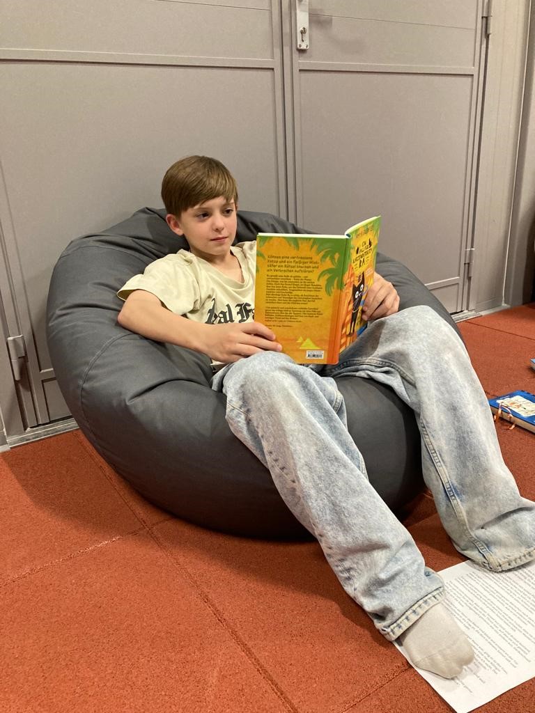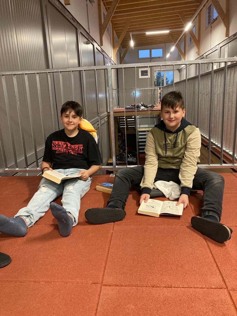 Unter dem Motto „1001 Nacht“ trafen sich am Dienstagabend die Schüler:innen der 1d und 1e ab 16:30 Uhr in der Schule. Die Lehrer:innen hatte unseren Bewegungsraum im 1. Stock als arabisches Zelt umgestaltet. Einige Kinder bereiteten das Abendessen zu. Insgesamt wurden über 120 Brote geschmiert. Jede Klasse las dann schließlich die Geschichte „Aladdin und die Wunderlampe“ gemeinsam in entspannter Atmosphäre. Am Ende blieb dann bis 21:30 Uhr auch noch etwas Zeit für freies Lesen in der selbst mitgebrachten Lieblingslektüre in unterschiedlichen Sprachen.