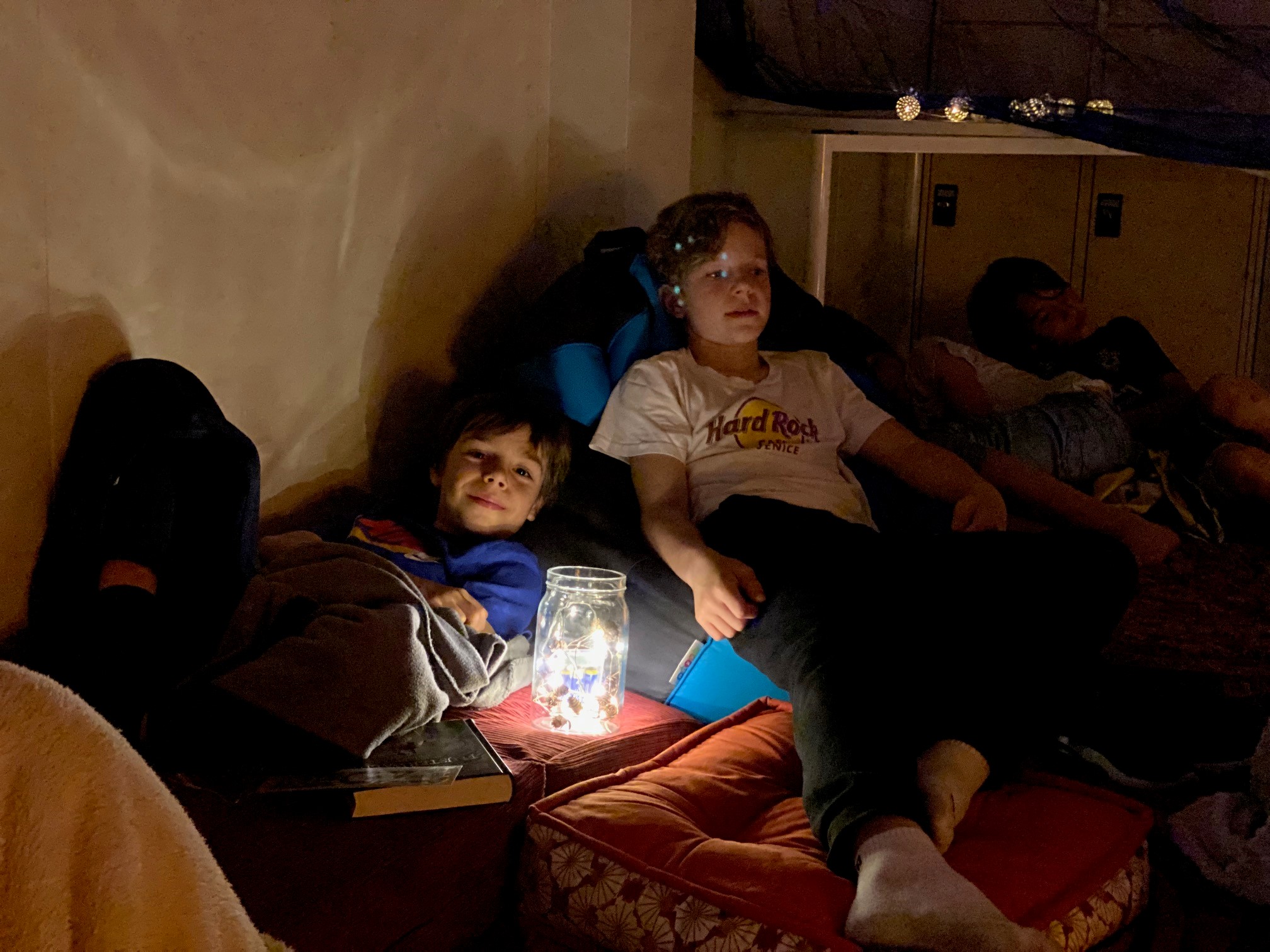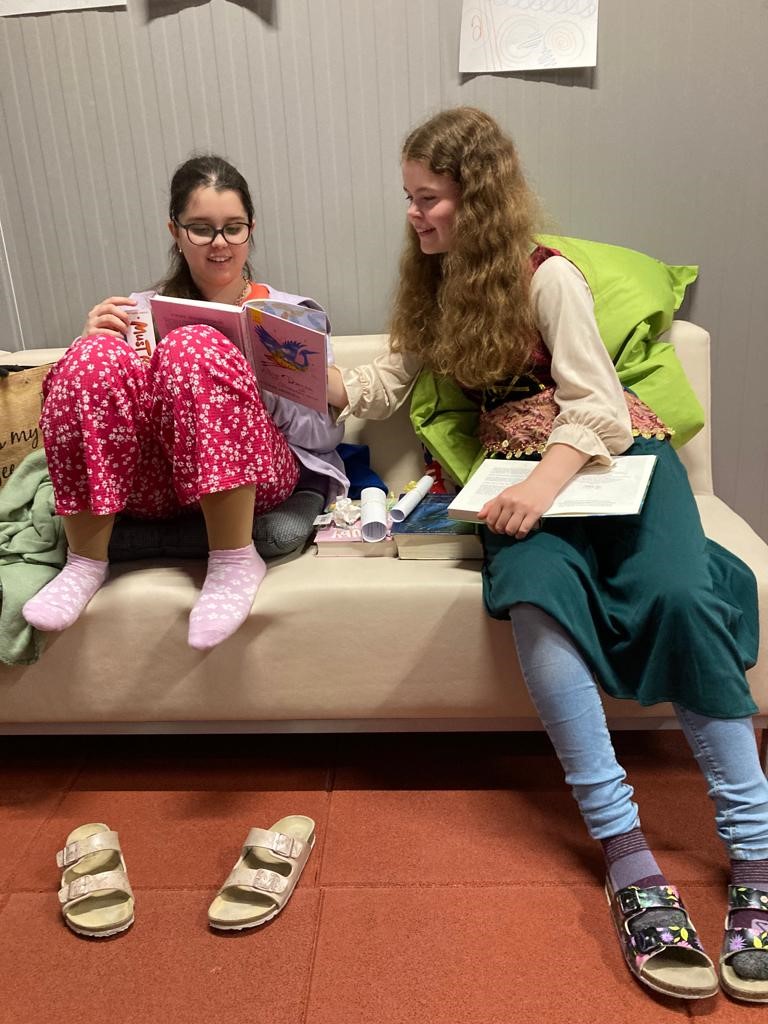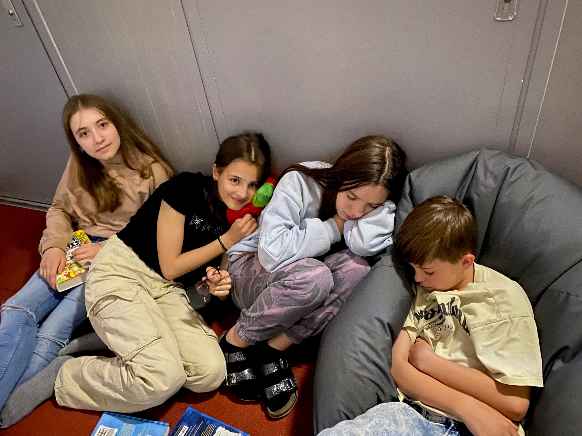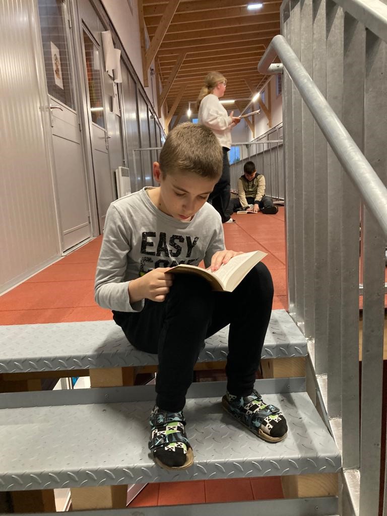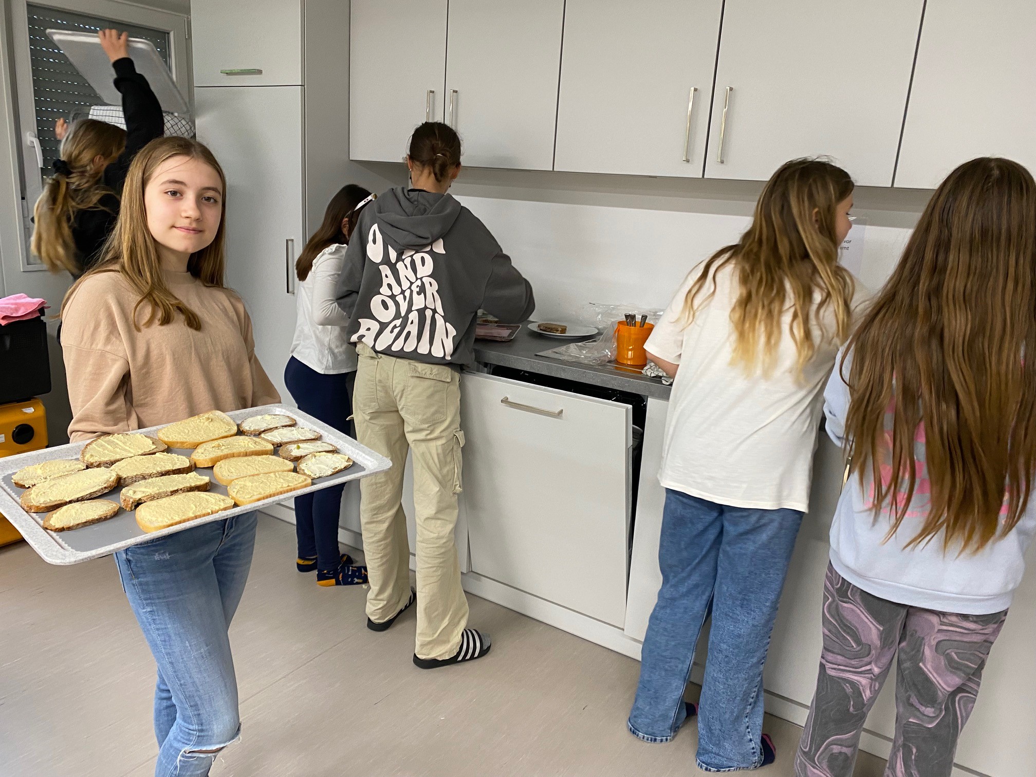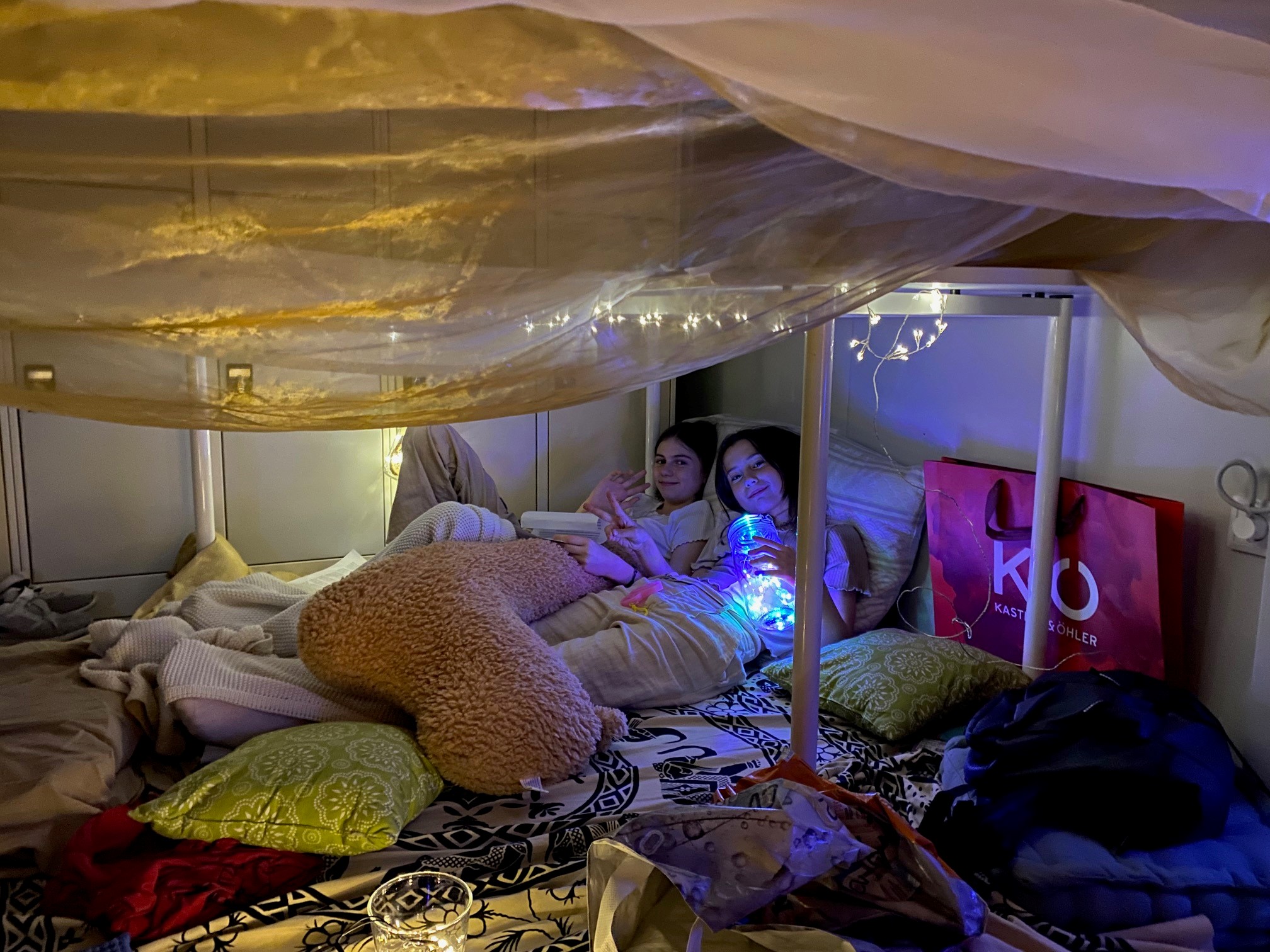 Unter dem Motto „1001 Nacht“ trafen sich am Dienstagabend die Schüler:innen der 1d und 1e ab 16:30 Uhr in der Schule. Die Lehrer:innen hatte unseren Bewegungsraum im 1. Stock als arabisches Zelt umgestaltet. Einige Kinder bereiteten das Abendessen zu. Insgesamt wurden über 120 Brote geschmiert. Jede Klasse las dann schließlich die Geschichte „Aladdin und die Wunderlampe“ gemeinsam in entspannter Atmosphäre. Am Ende blieb dann bis 21:30 Uhr auch noch etwas Zeit für freies Lesen in der selbst mitgebrachten Lieblingslektüre in unterschiedlichen Sprachen.