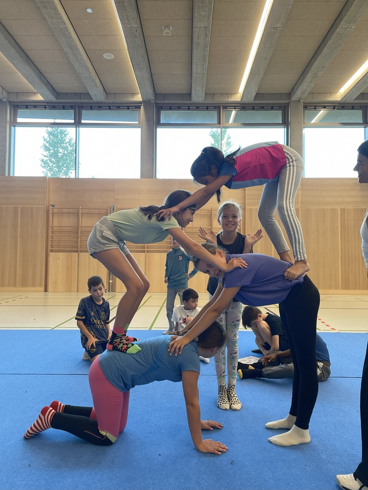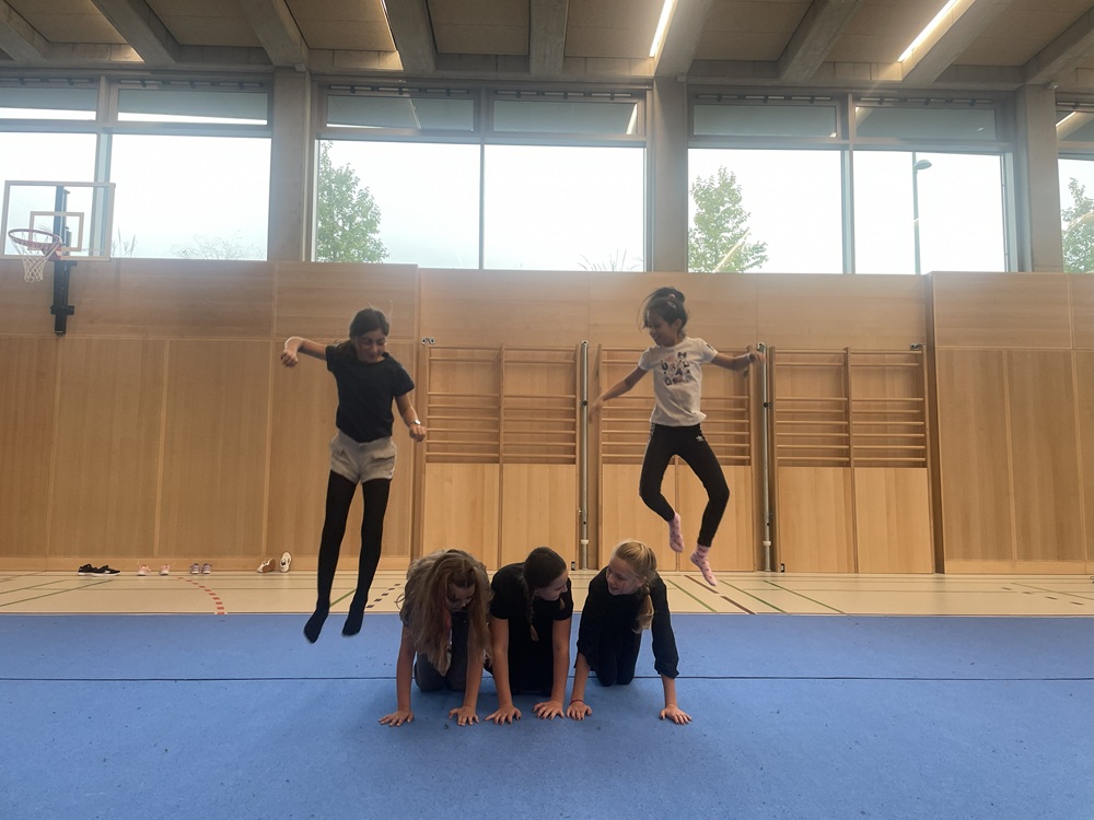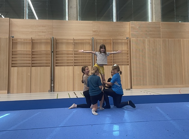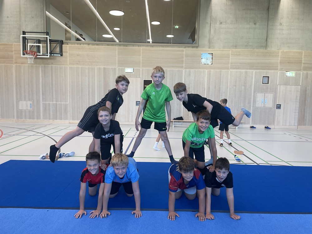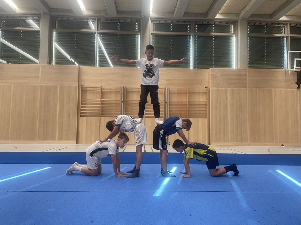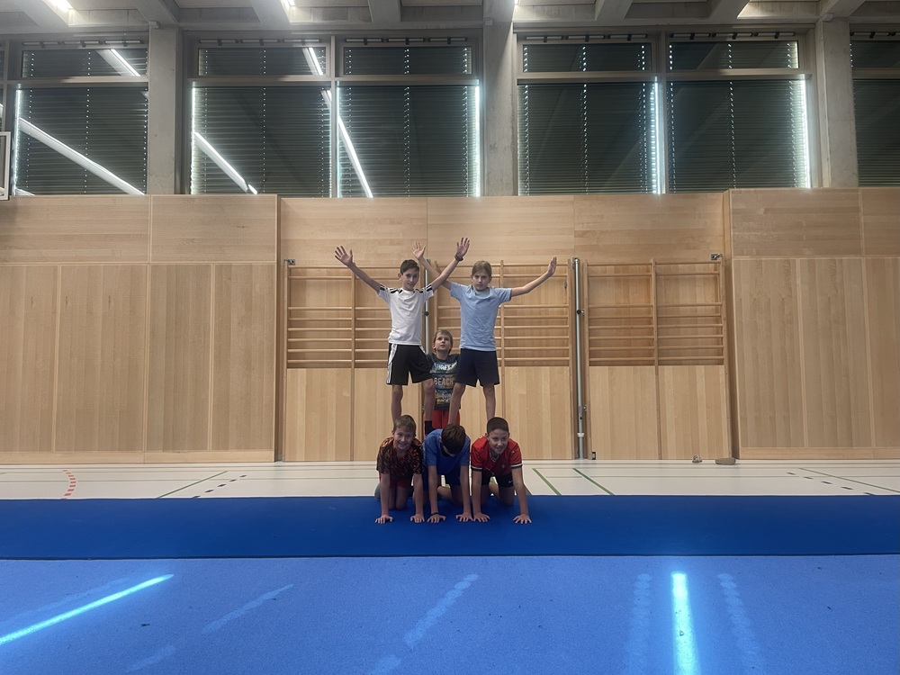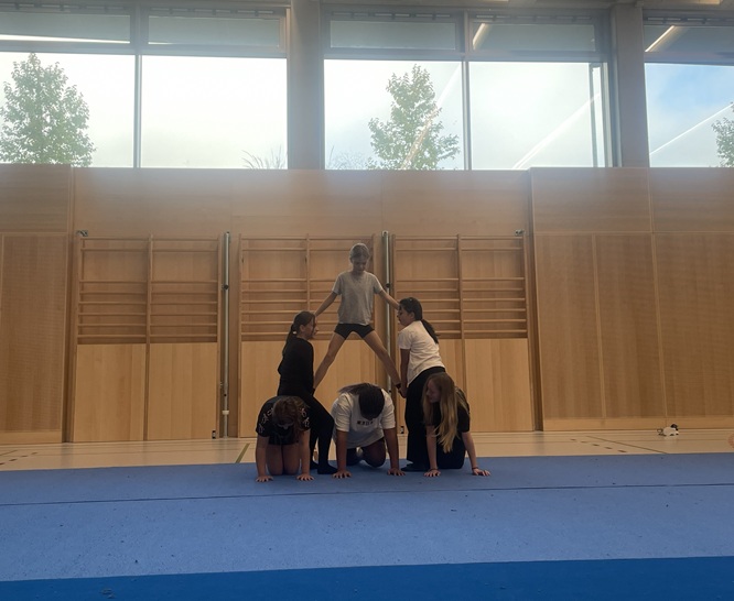 Die Schülerinnen und Schüler der 1. Klassen beschäftigten sich seit Beginn des Schuljahres mit dem Thema Akrobatik. Dabei sammelten sie nicht nur erste Erfahrungen im Bauen von Figuren und Pyramiden, sondern stärkten auch wichtige Fähigkeiten wie Vertrauen, Kraft, Koordination und Teamarbeit. Mit viel Freude, Mut und gegenseitiger Unterstützung entstanden beeindruckende akrobatische Übungen – ein gelungenes Projekt, das den Zusammenhalt in den Klassen weiter gestärkt hat.