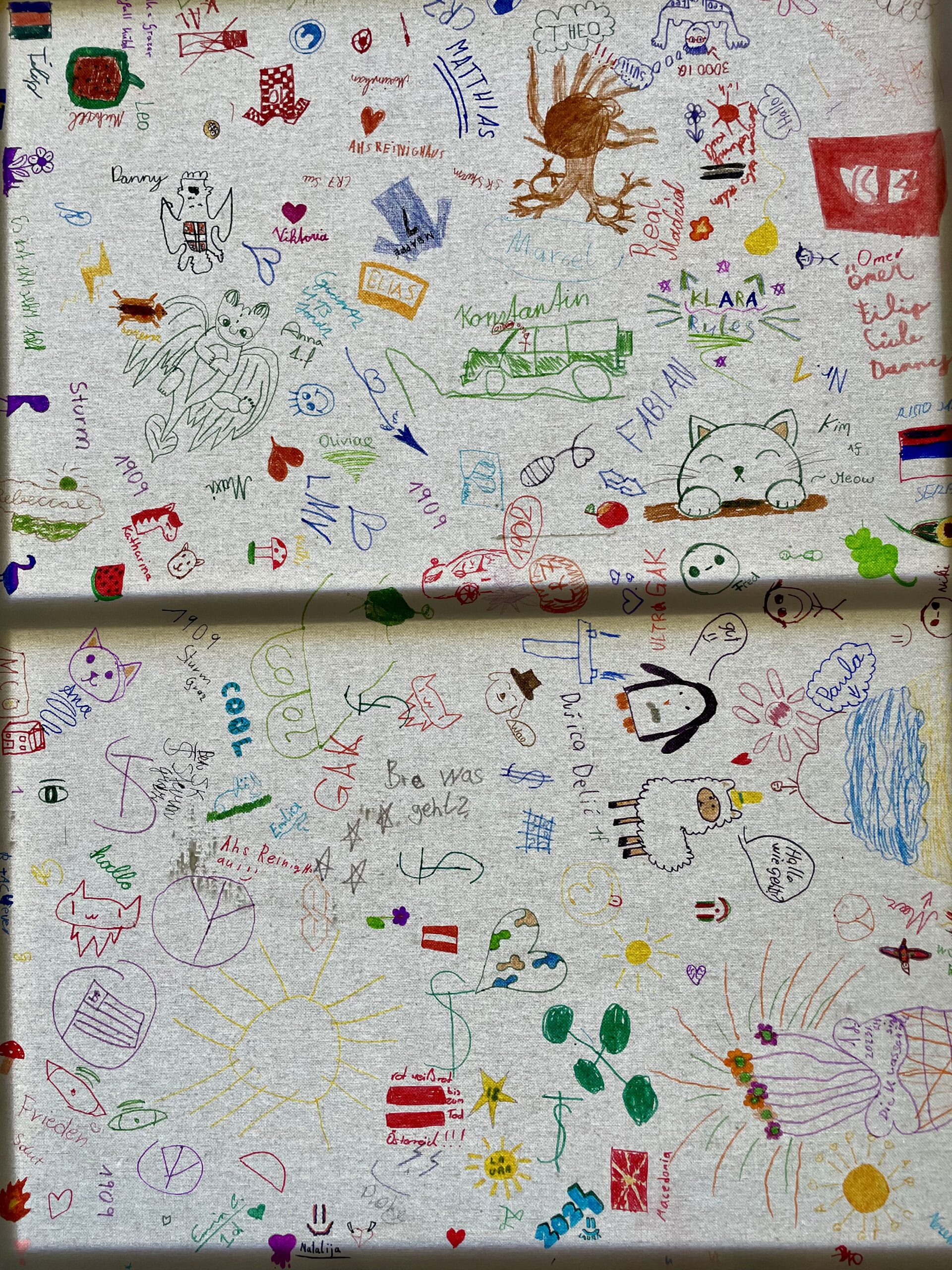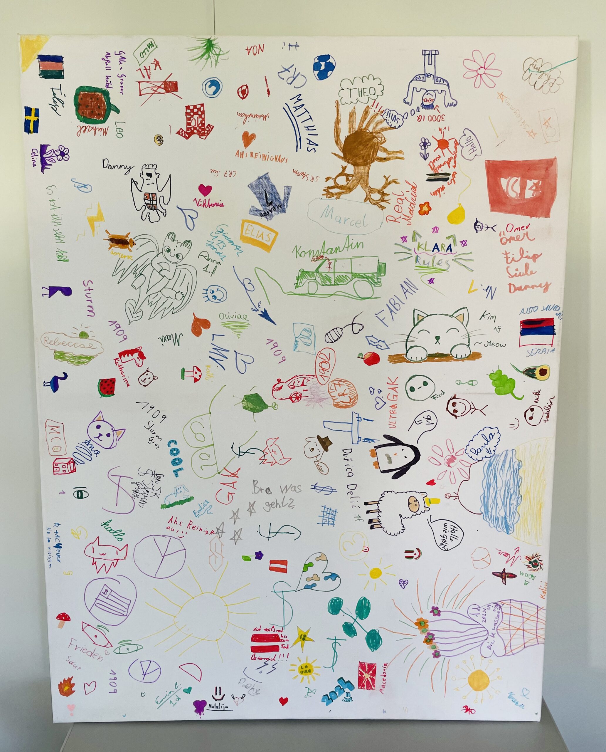 Dass jeder und jede Einzelne in einer Gemeinschaft wichtig ist, hörten wir in der Geschichte vom Streit der Farben. Die weiße Leinwand, die anschließend von allen Schüler:innen bunt gemacht wurde, verdeutlicht das: wir sind eine bunte Gemeinschaft!