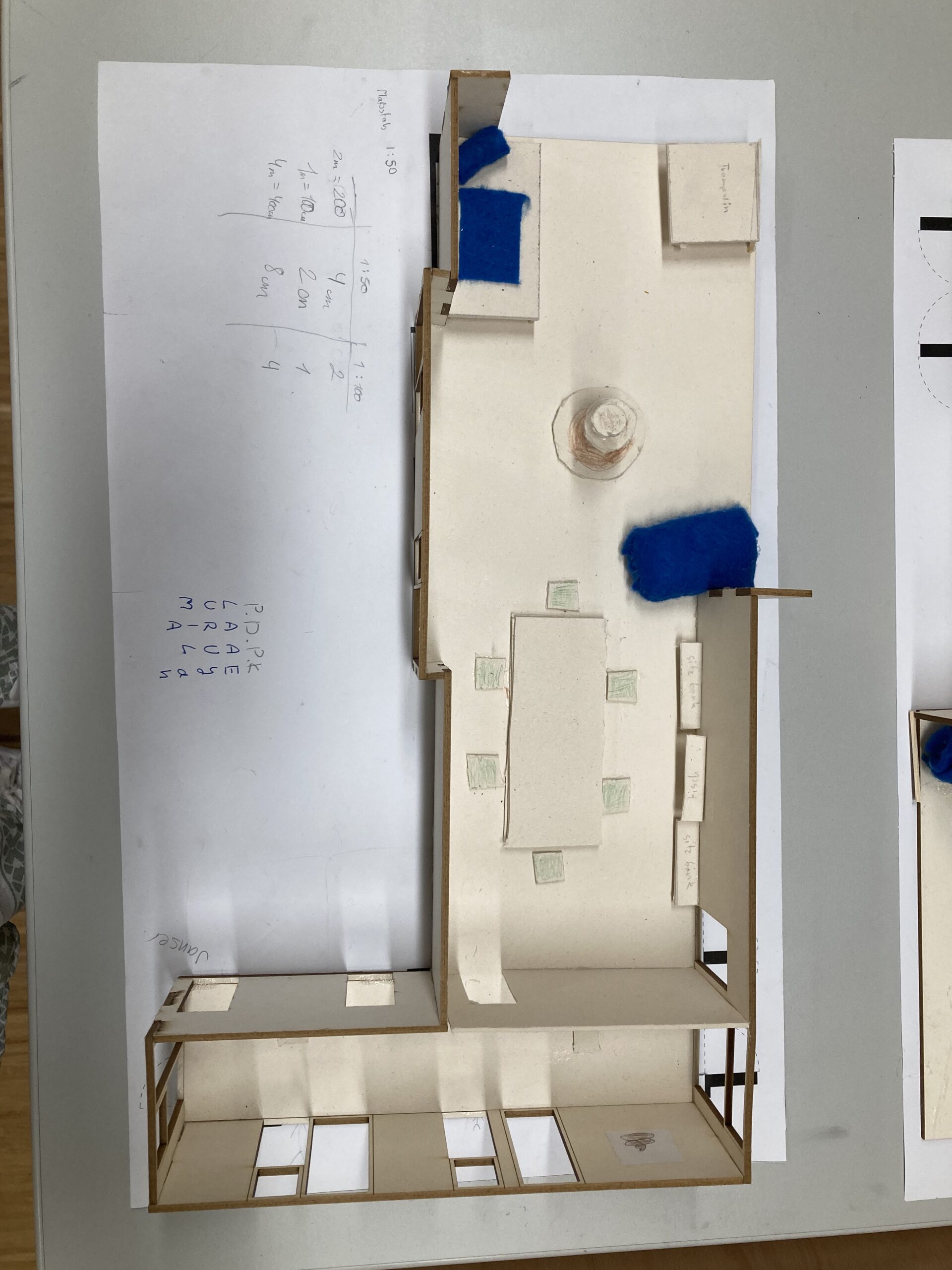 Mit diesem frisch gewonnenen Wissen und Verständnis darüber, was es braucht, um ein so beeindruckendes Gebäude zu entwerfen, entwickelten unsere angehenden 2e-Architekt:innen unter der fachkundigen Anleitung von Fr. Julia Pelzl, Master-Studentin im letzten Studienjahr an der Universität Graz, ein neues Design für den Blauen Cluster. Aus ihren Konzeptskizzen erstellten sie anschließend einen maßstabsgetreuen Prototypen im Maßstab 1:50.