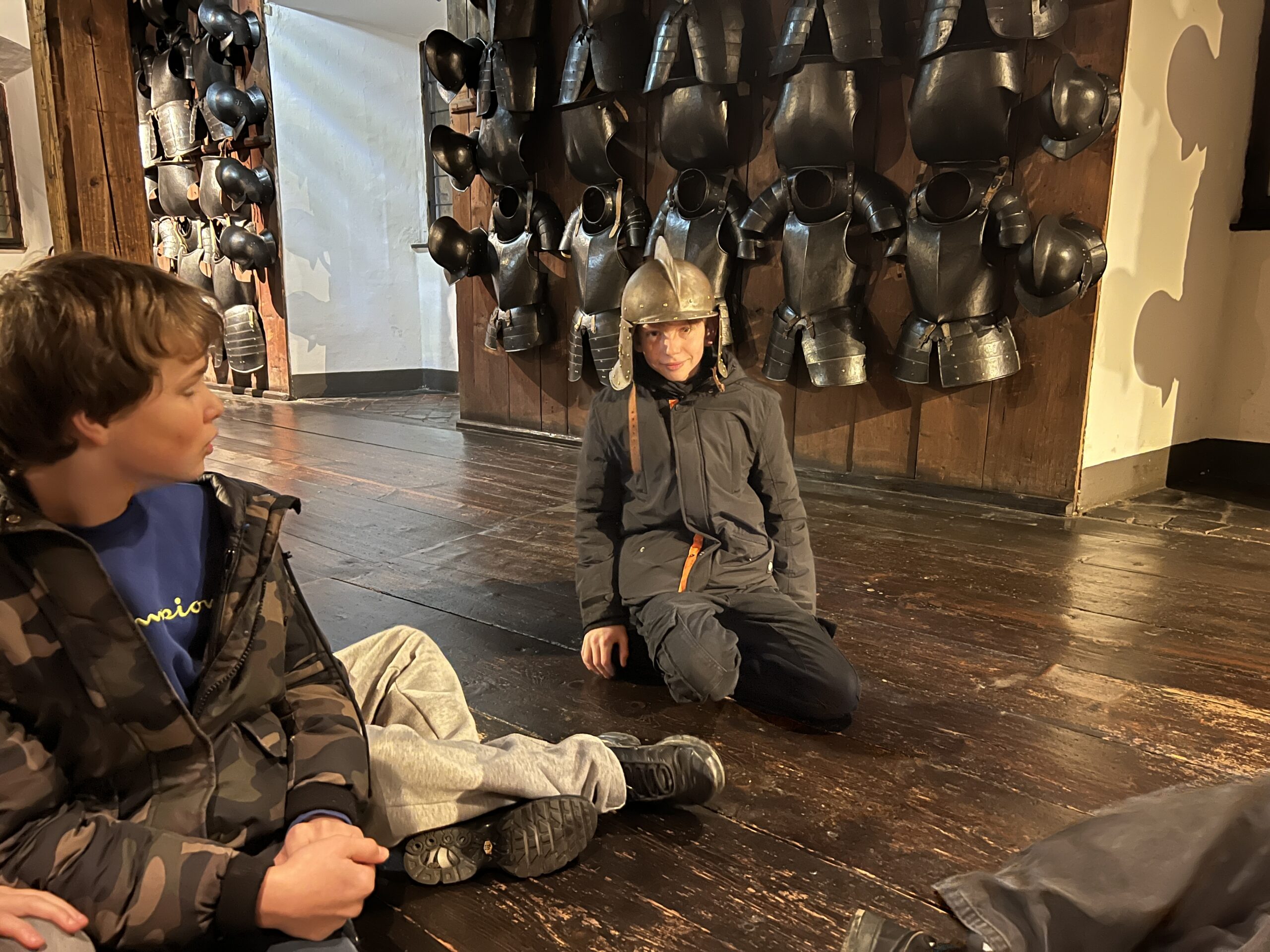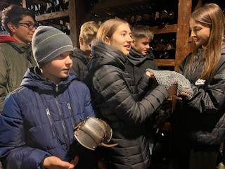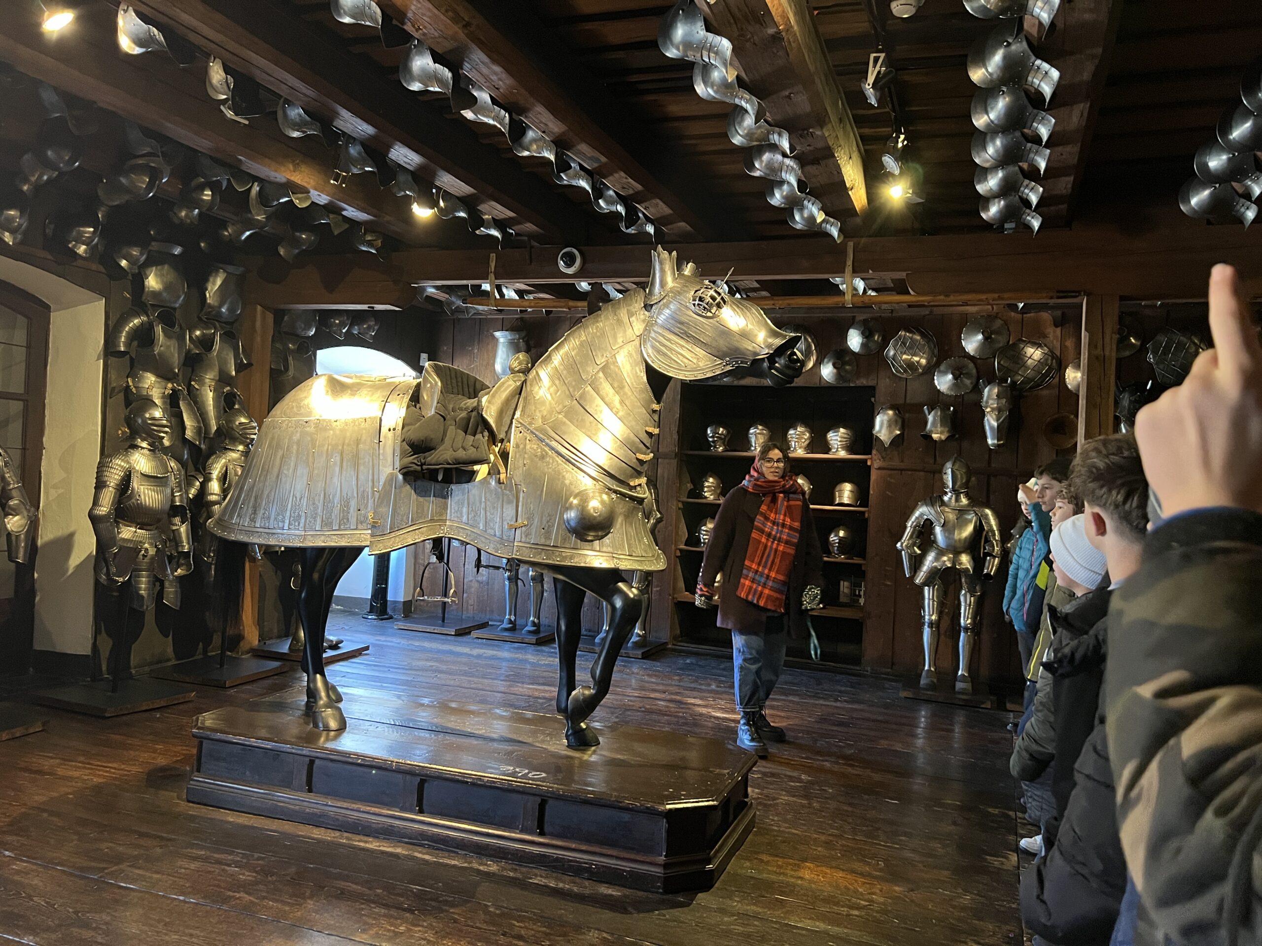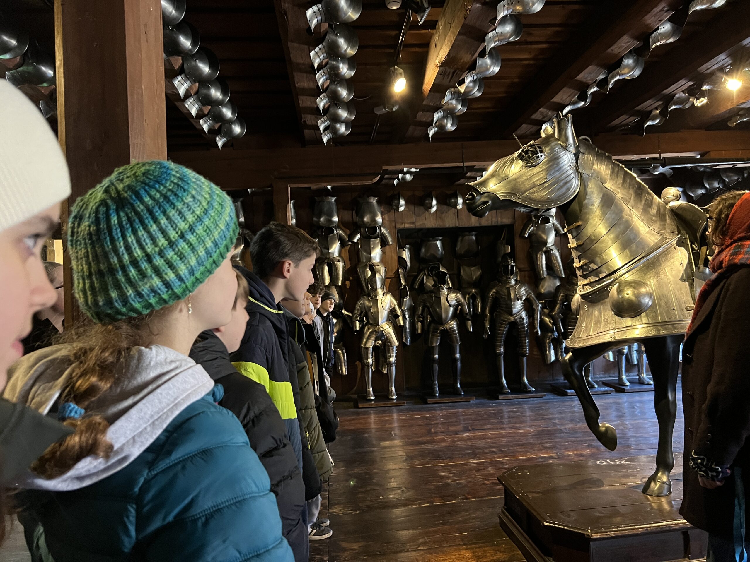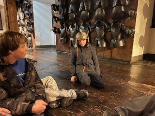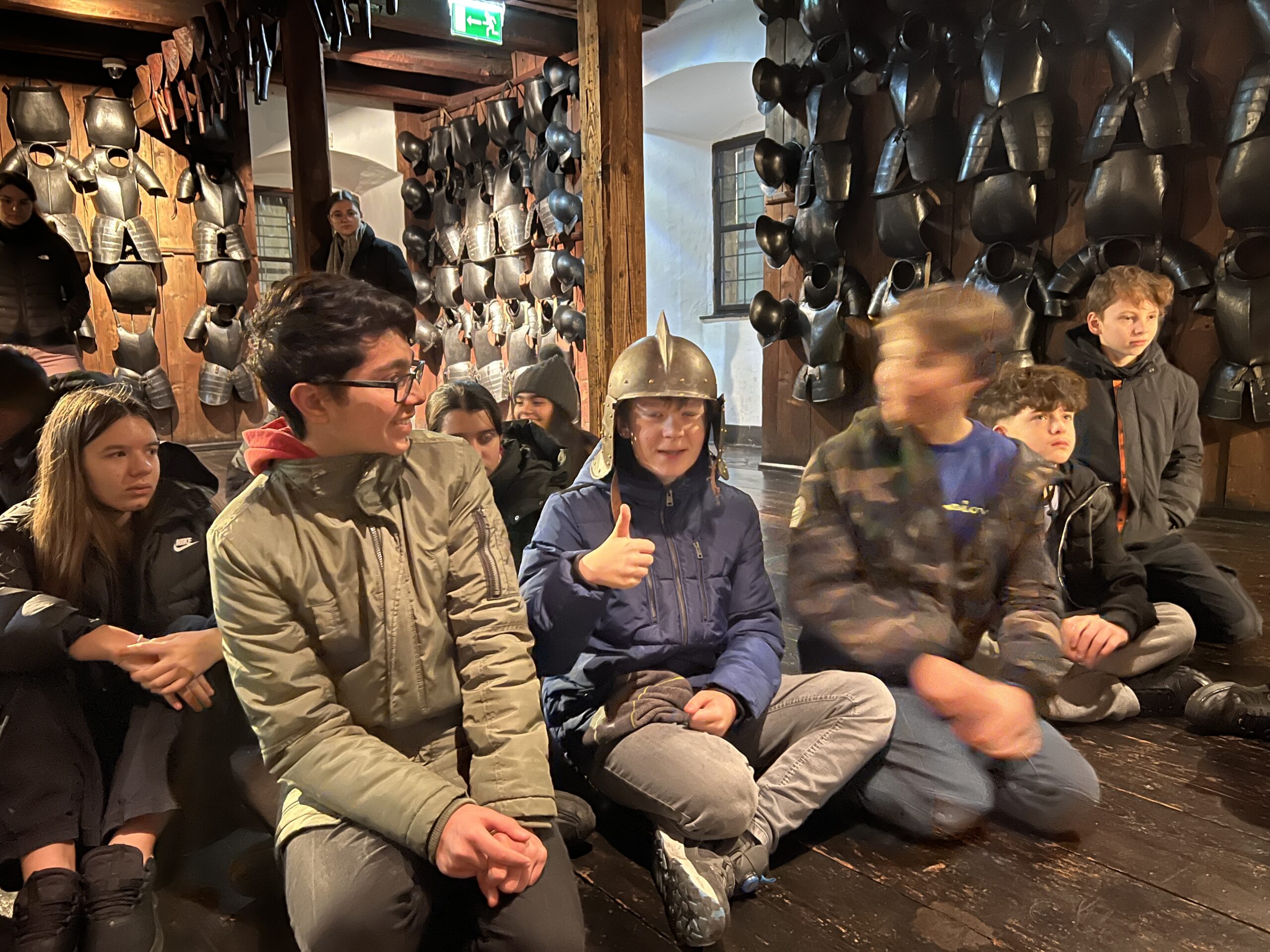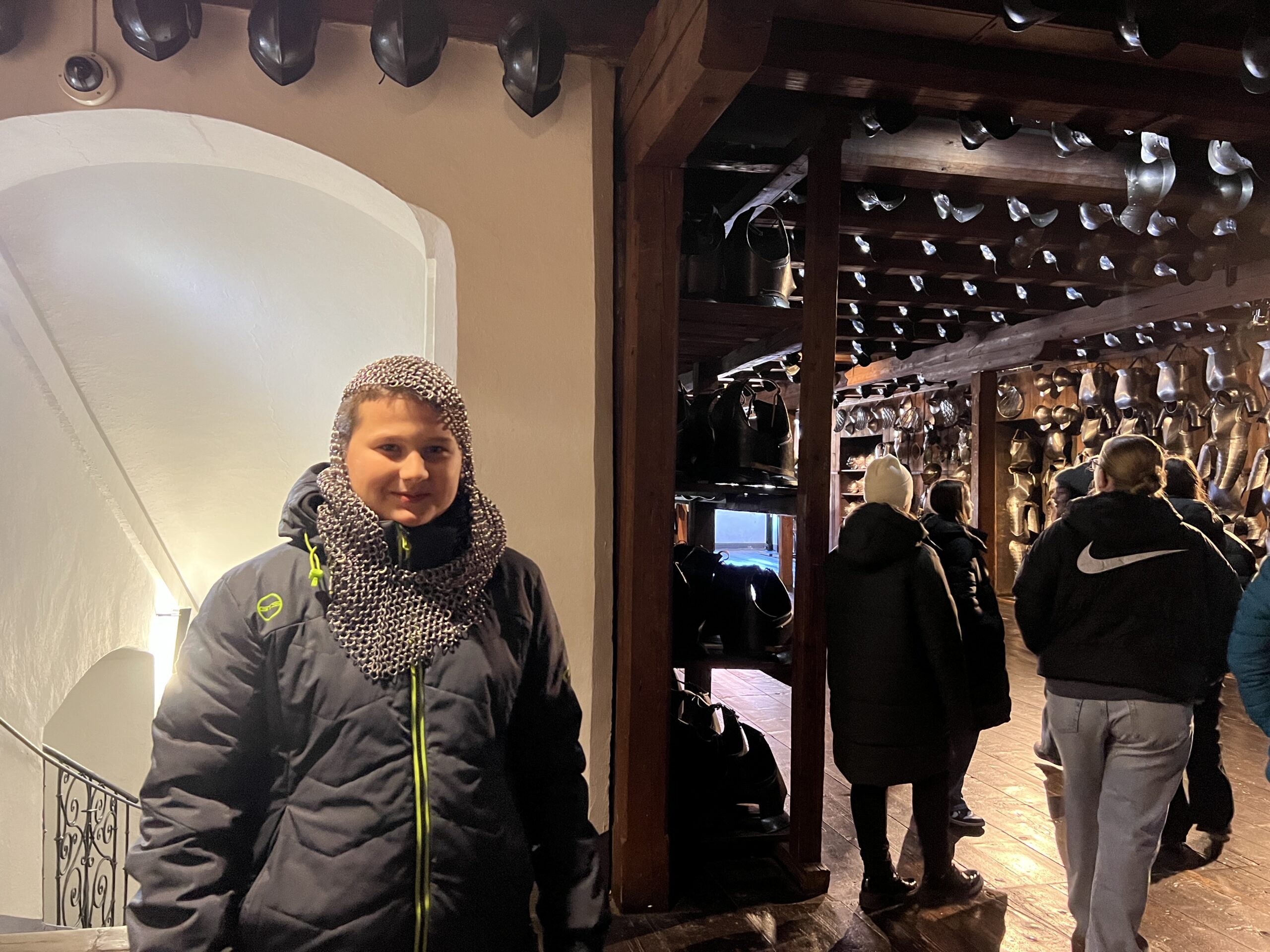 Der Ausflug war sehr interessant und informativ, da das auch Zeughaus mit neuzeitlichen Waffen sehr gut in den derzeitigen Lehrplan des Geschichteunterrichts passt.  Während der Führung durfte jeder einmal eine Replikation eines echten Helms, eines Kettenhemdes und einer Kettenhaube, inklusive Handschuhe aus Eisen anfassen bzw. anprobieren (siehe Fotos). Nach der einstündigen Tour durch das Zeughaus bekamen alle Schüler:innen noch ein Aufgabenblatt zum Uhrturm. ALs alle Aufgaben erledigt waren, konnte man noch bequem einen Spaziergang durch die derzeit sehr schön weihnachtlich geschmückte Grazer Innenstadt machen.