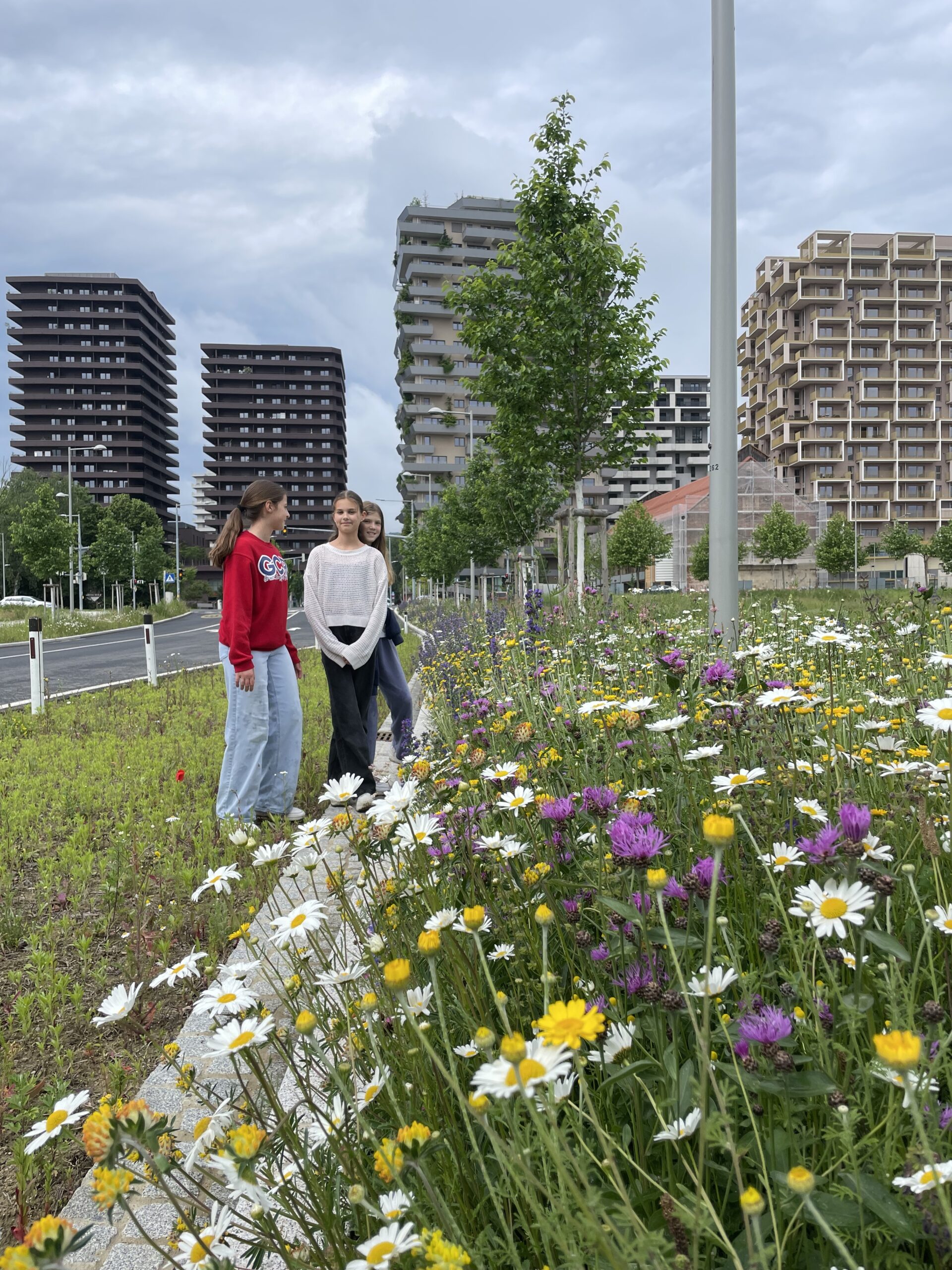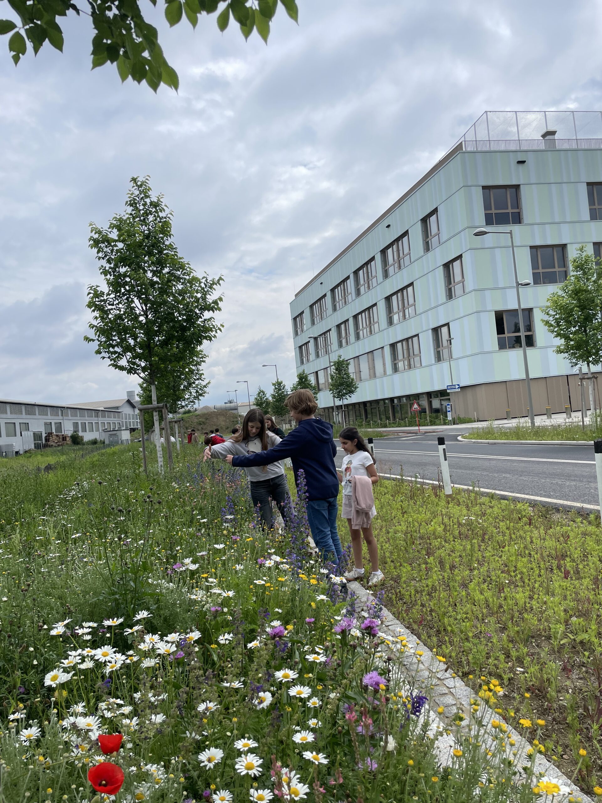 Am Mittwoch, dem 21. Mai, unternahm die Klasse 1e der AHS Reininghaus einen spannenden Blühwiesenspaziergang, begleitet von zwei Expertinnen der Naturwerkstatt. Gemeinsam erkundeten die Schüler:innen den Grünstreifen neben der Schule und lernten dabei, wie wichtig Bienen und andere bestäubende Insekten für unser Ökosystem sind. Es wurden verschiedene Blumenarten gezählt und das Thema Insektensterben und dessen Auswirkung kindgerecht besprochen. Ein besonderes Highlight war die Möglichkeit, mit einer speziellen Brille die Welt aus der Sicht einer Biene zu erleben. Der Ausflug war lehrreich und weckte bei vielen Kindern das Interesse an Natur- und Umweltschutz.