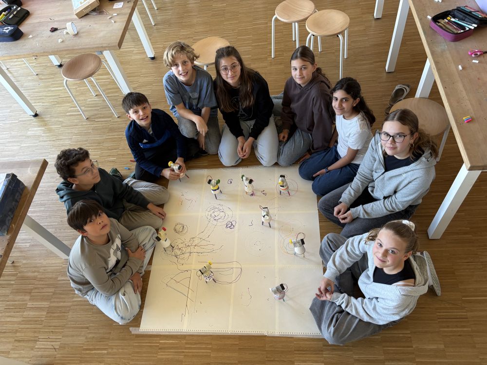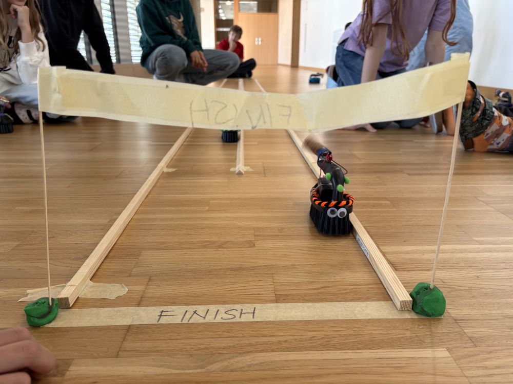 The students investigated how motors work, experimented with connecting components, and discovered how the direction of spinning or vibration can change the movement of a robot. They used this understanding to plan, build, and refine their bots—adding colourful pens, creative bodies, and clever design features to bring each robot to life.
