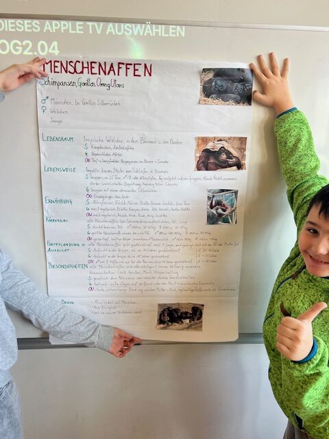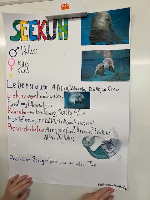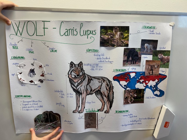 Ein Highlight jagte das nächste bei den Tierreferaten der fünf ersten Klassen. Die Schüler:innen erarbeiteten fächerübergreifend in den Fächern Biologie, Deutsch und Digitale Grundbildung  Referate zu ihrem Tieblingstier. Die Vorträge wurden durch Plakate und wahlweise auch durch PowerPoint-Präsentationen ergänzt.