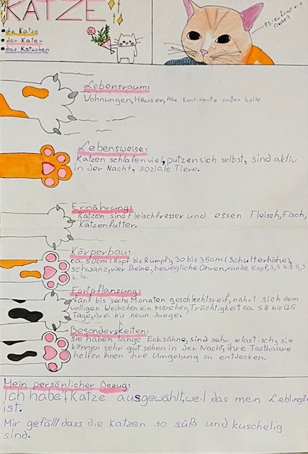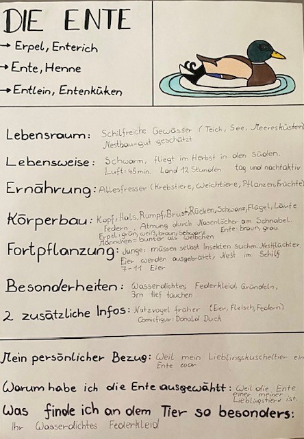 „Sciurus vulgaris! Nein, das ist kein Zauberspruch aus Harry Potter, sondern das eurasische Eichhörnchen, das ich euch heute vorstellen werde.“ Mit diesen Worten und einem Zauberstabwedler eröffnete Niklas aus der 1e die fächerübergreifenden Tierreferate, bei denen ein Highlight das nächste jagte. In den Fächern Biologie, Deutsch und Digitale Grundbildung investierten die Schüler:innen der 1. Klassen viel Zeit und Mühe in das Erstellen wunderschöner Plakate und PowerPoint-Präsentationen.
