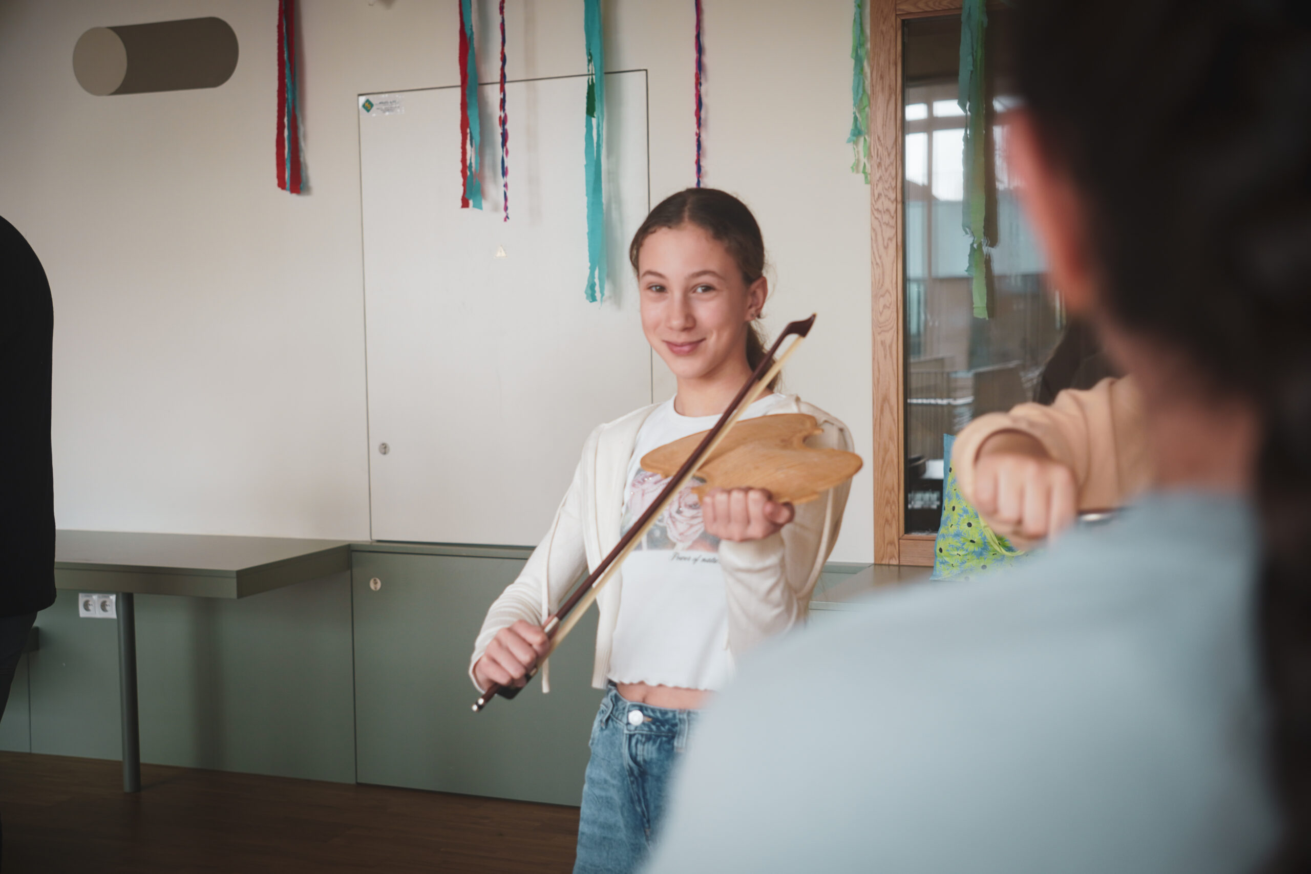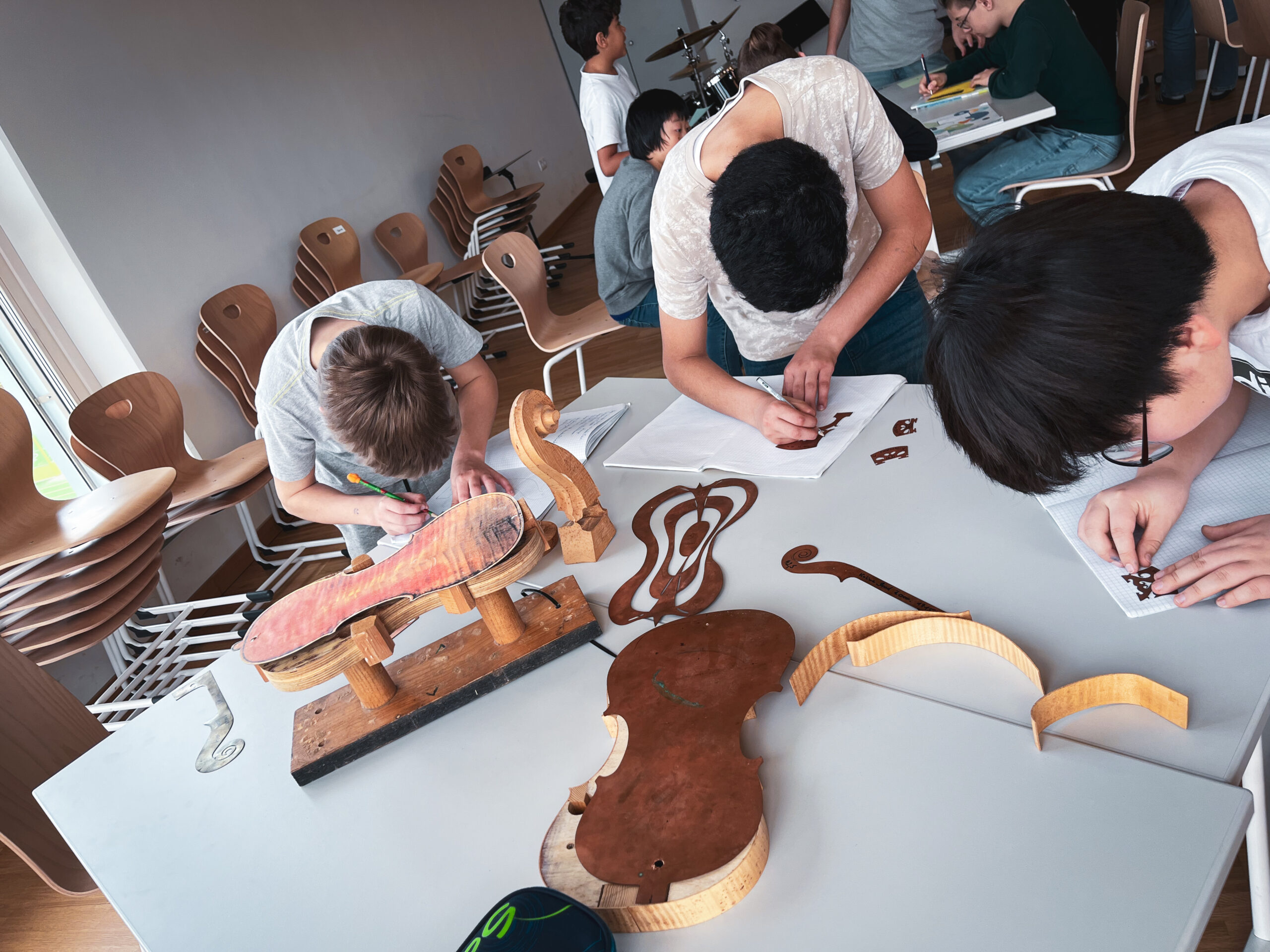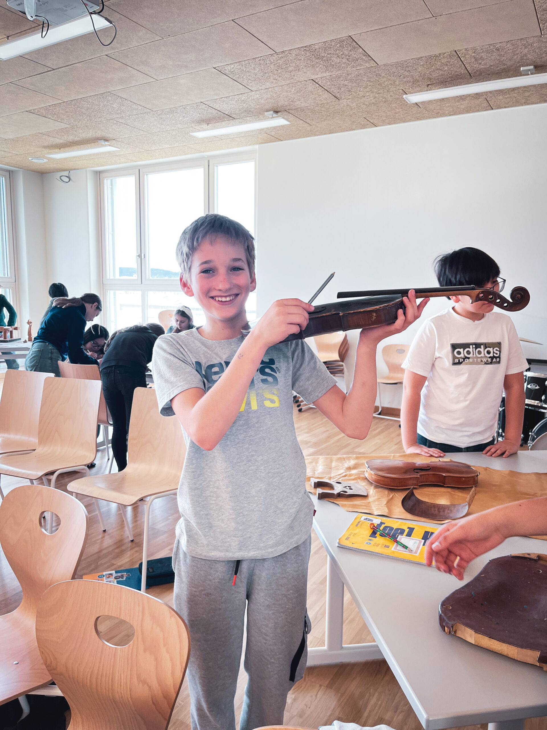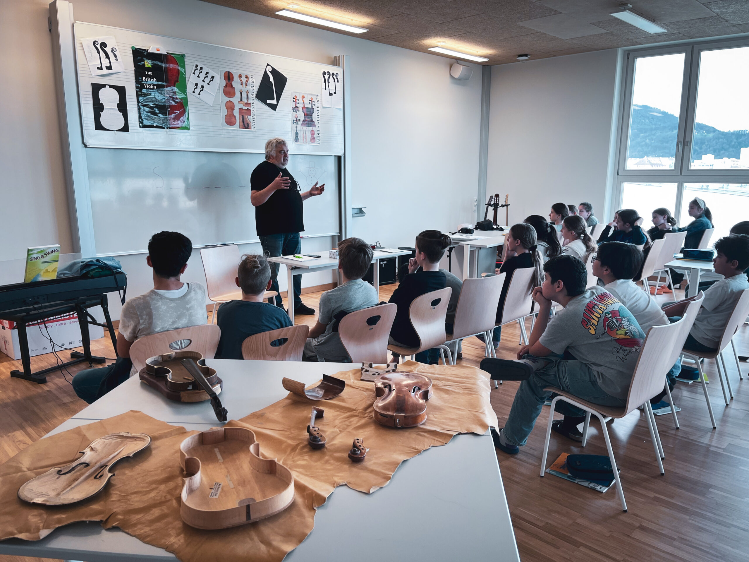 Ende März war in der 2e im Zuge des Musikunterrichts der Geigen- und Bogenbaumeister Georg Ertl zu Gast, um den Kindern sein Handwerk näher zu bringen. Die Schüler und Schülerinnen konnten dabei verschiedenste Werkzeuge, Holzarten und Techniken kennenlernen, mit denen man die Streichinstrumente baut und restauriert. Mit vielen spannenden Inputs und einigen Stationen, an denen die Kinder in die Kunst des Instrumentenbaus eintauchen konnten, bleibt dieser Tag wohl in besonderer Erinnerung.