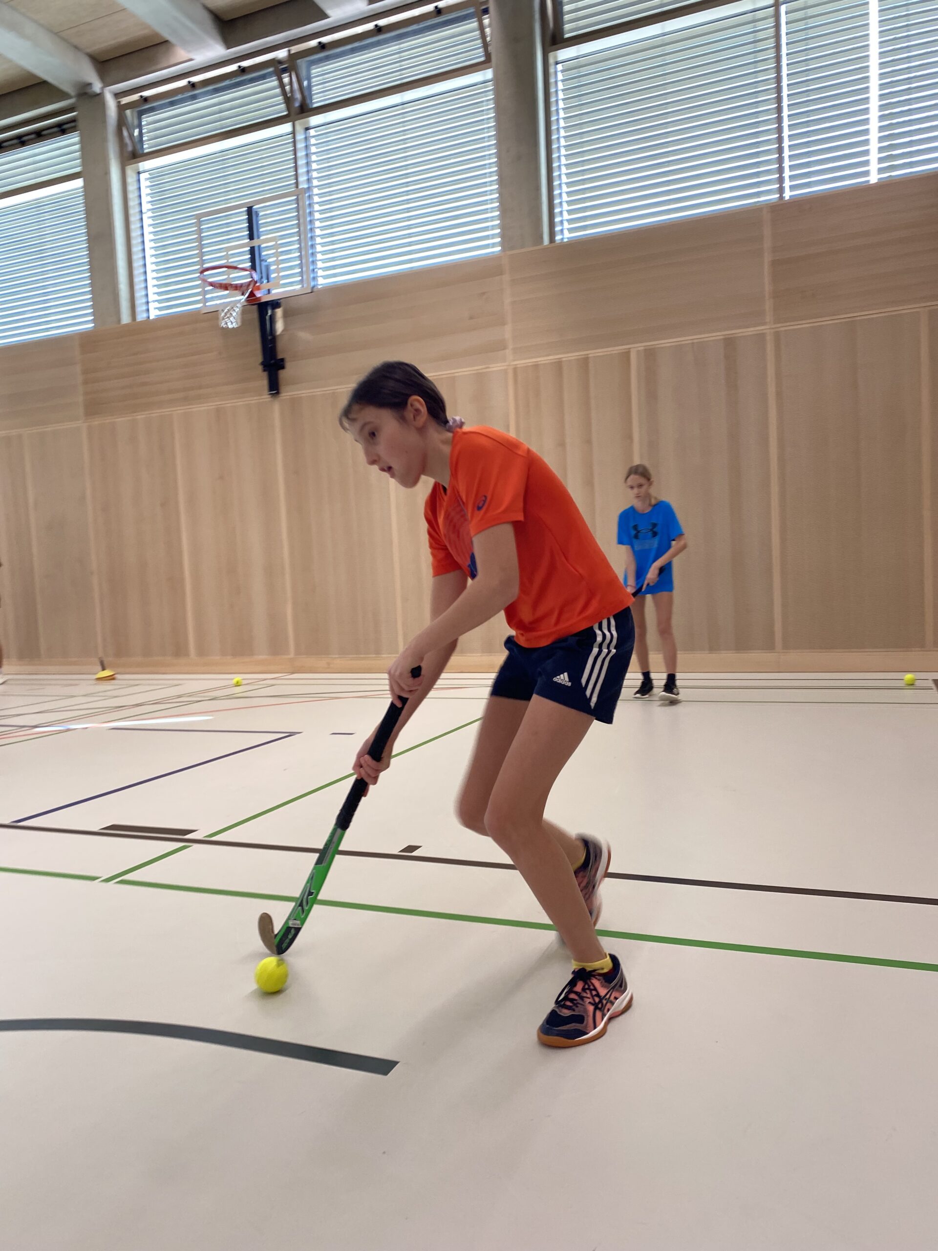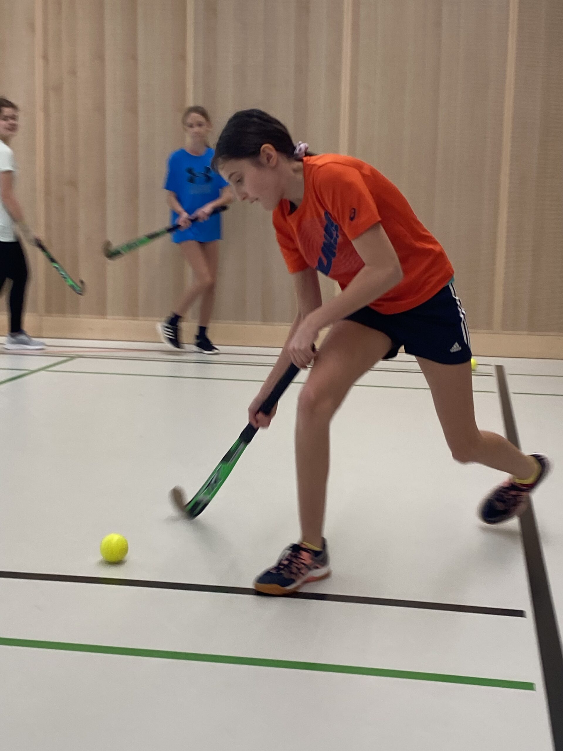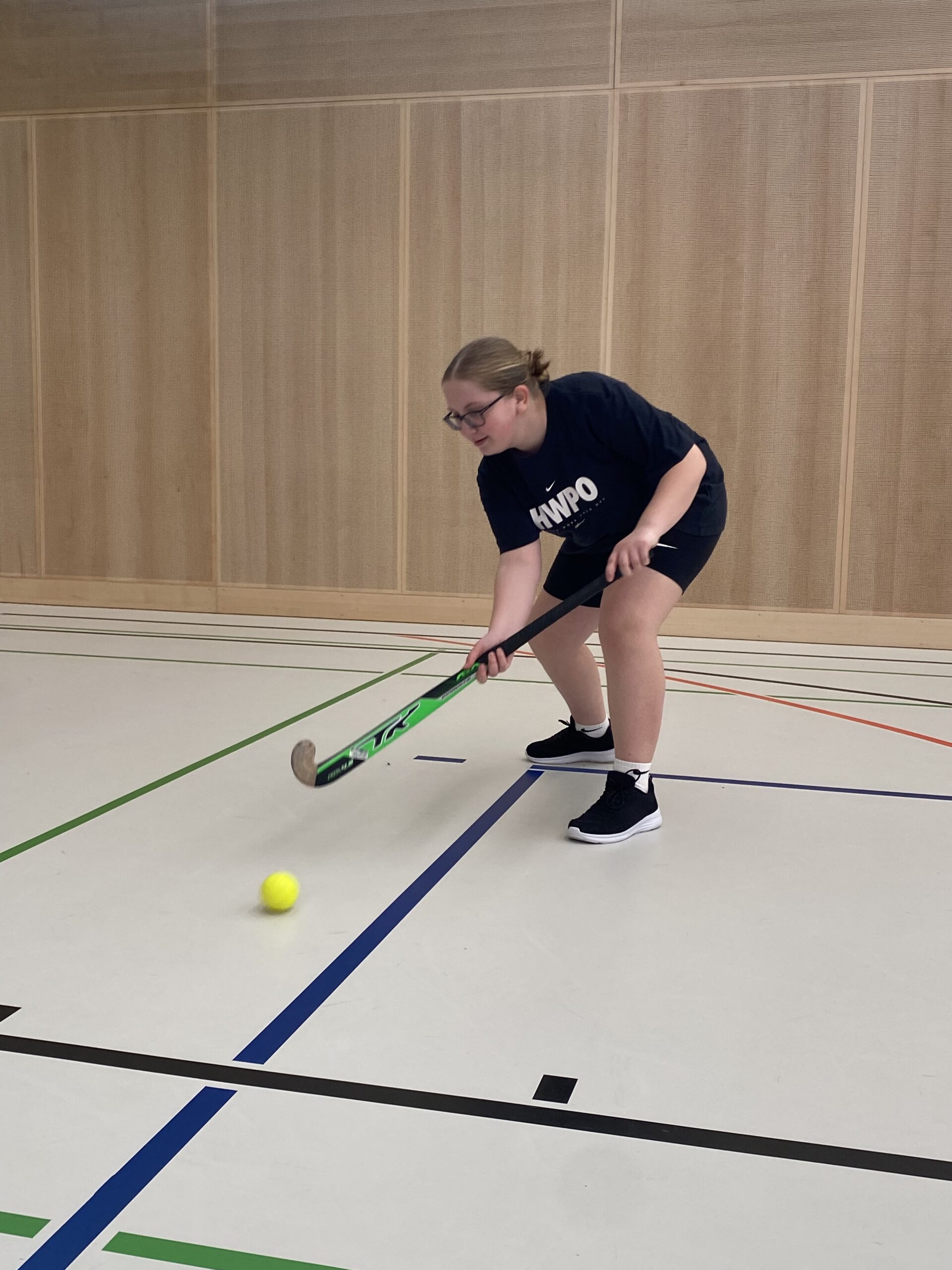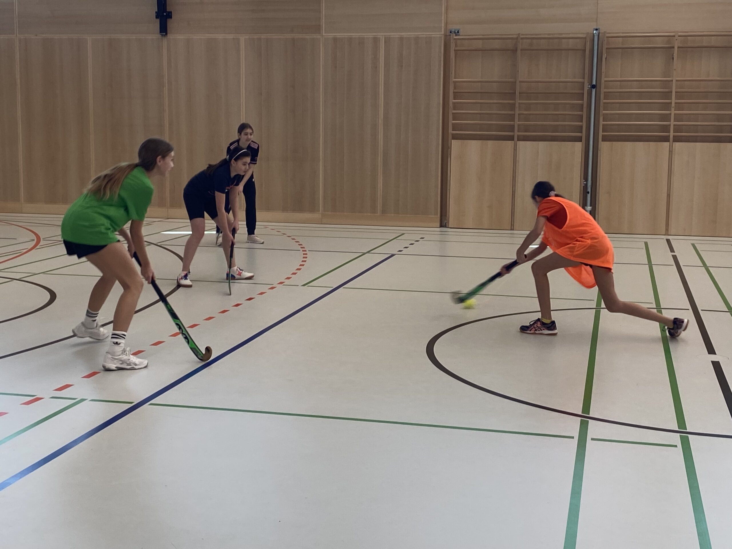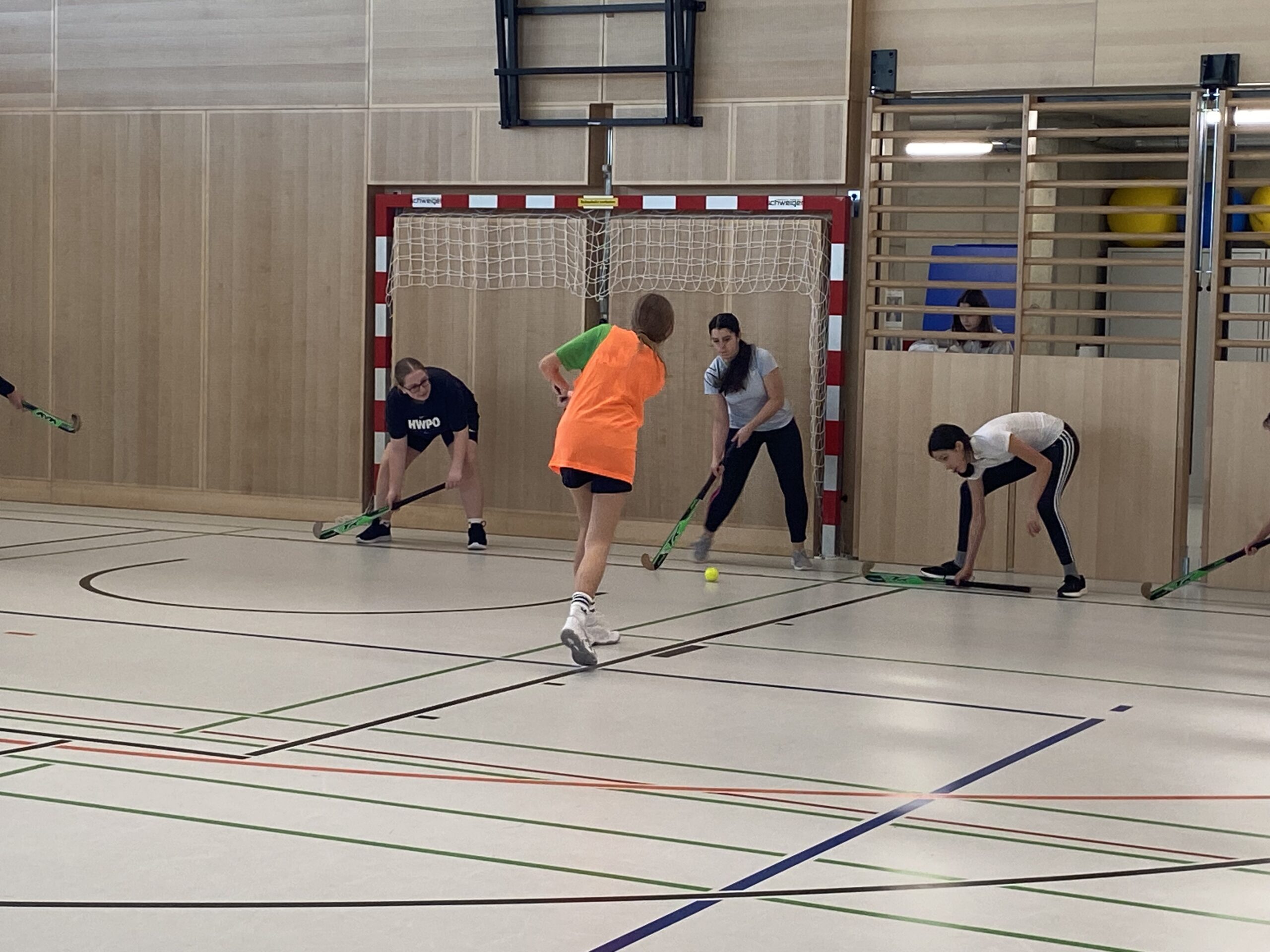 Somit kamen auch die Mädels der 3d und 3e in den Genuss des Modeltrainings. Zu Beginn begrüßte Gerhard „Kubi“ Kubassa die Teilnehmerinnen herzlich. Nach einer kurzen Einführung in den Sport sowie die grundlegenden Regeln folgte ein gemeinsames Aufwärmen, um Verletzungen vorzubeugen. Anschließend konnten die Schülerinnen erste Erfahrungen mit dem Hockeyschläger aus Holz und dem harten Ball sammeln.