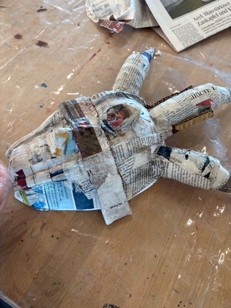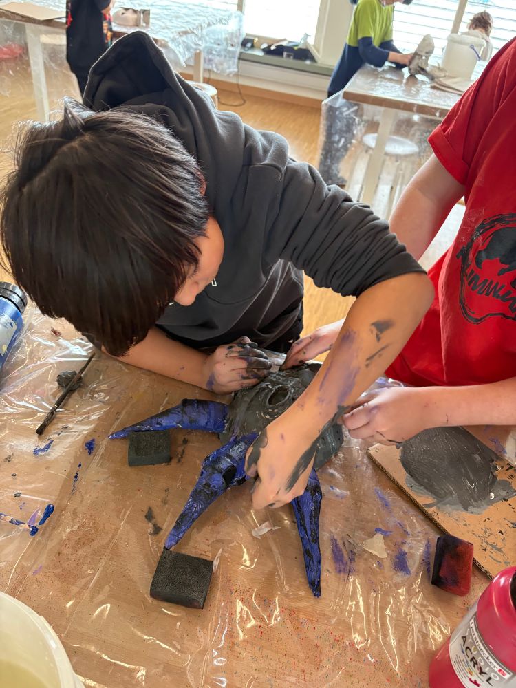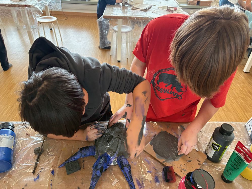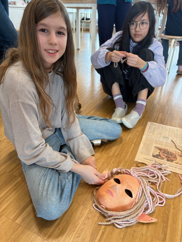 Die Aufgabe bestand darin, eine Maske zu entwerfen und herzustellen, die mindestens ein dreidimensionales (3D) Element enthält. Mit verschiedenen Materialien, darunter Pappmaché, planten die Kinder ihre Designs und setzten sie mit großer Konzentration und Begeisterung um. Von erhabenen Nasen und mehrschichtigen Augen bis hin zu auffälligen Strukturen und fantasievollen Details zeigte jede Maske sorgfältige Planung und Kreativität. Die Arbeit mit Pappmaché ermöglichte es den Kindern, mit Form, Stabilität und Oberflächen zu experimentieren und flache Materialien in stabile 3D-Formen zu verwandeln.