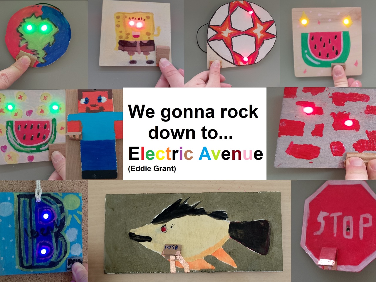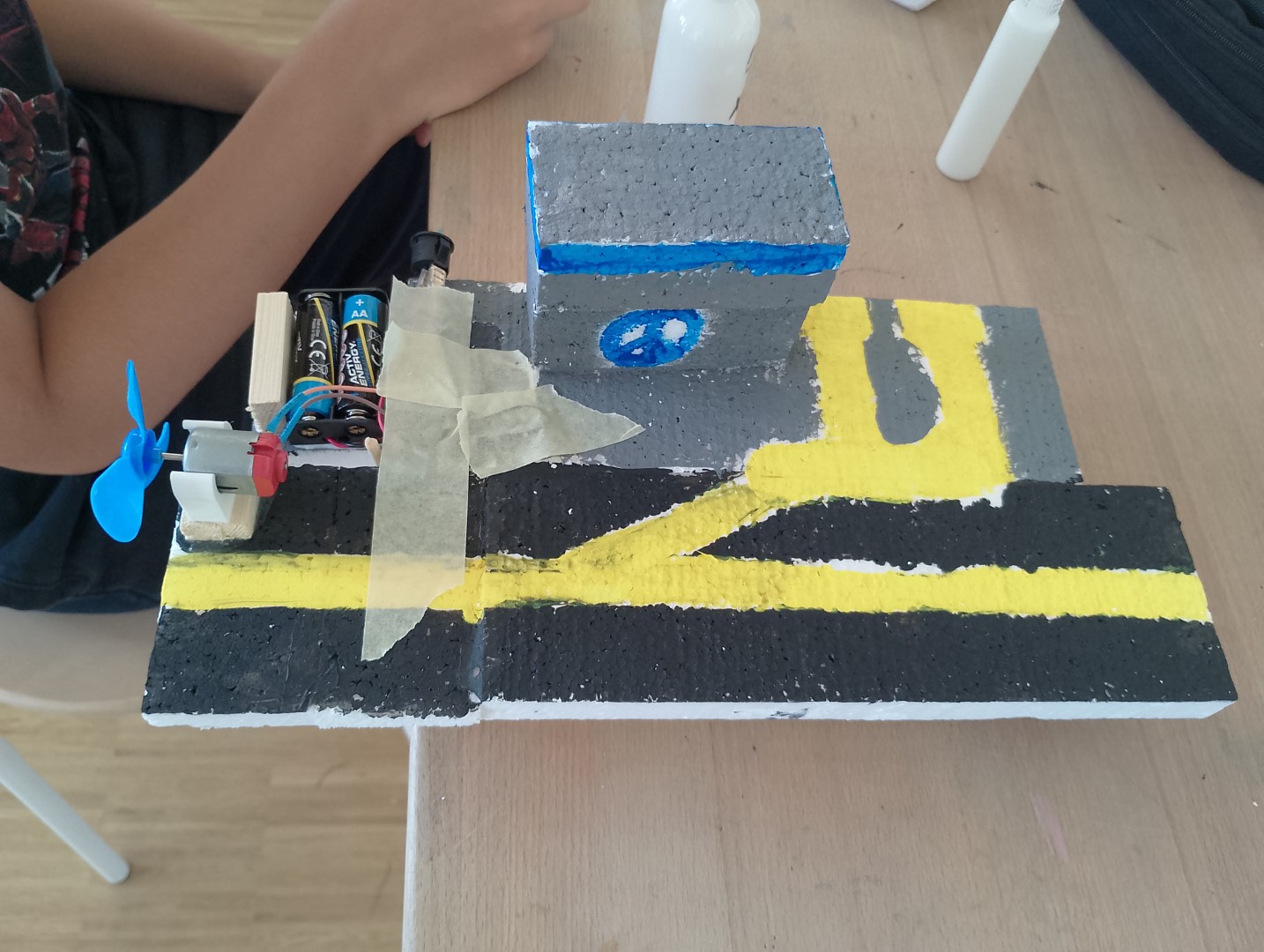 Der Lehrer hat uns etwas Neues beigebracht und uns geholfen. Wir mussten bohren und LED Lights benutzen, um das aufzubauen. Wir mussten auch Designs aufzeichnen. Jeder hat alleine was Kreatives gebaut. Wenn wer Hilfe gebraucht hat, haben wir uns auch gegenseitig geholfen. Manchmal war es nicht leicht, schnell genug fertig zu werden, aber alle haben es geschafft.