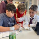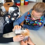 Unsere Schüler:innen der drei ersten Klassen konnten sich in unterschiedlichsten Workshops mit der Thematik auseinandersetzen. Da wurden Badebomben und Papier hergestellt, unterschiedliche Kunststoffe untersucht, Müll gesammelt und aus alten Jeans neue Topflappen gewebt. Belgeitet wurden alle Aktivitäten wieder von liebevoll selbst gebastelten Sockenpuppen, die in Videos zum Leben erweckt wurden. Mit ihren Dialogen informierten und kommentieren die „Sockis“ die neuen Erkenntnisse.