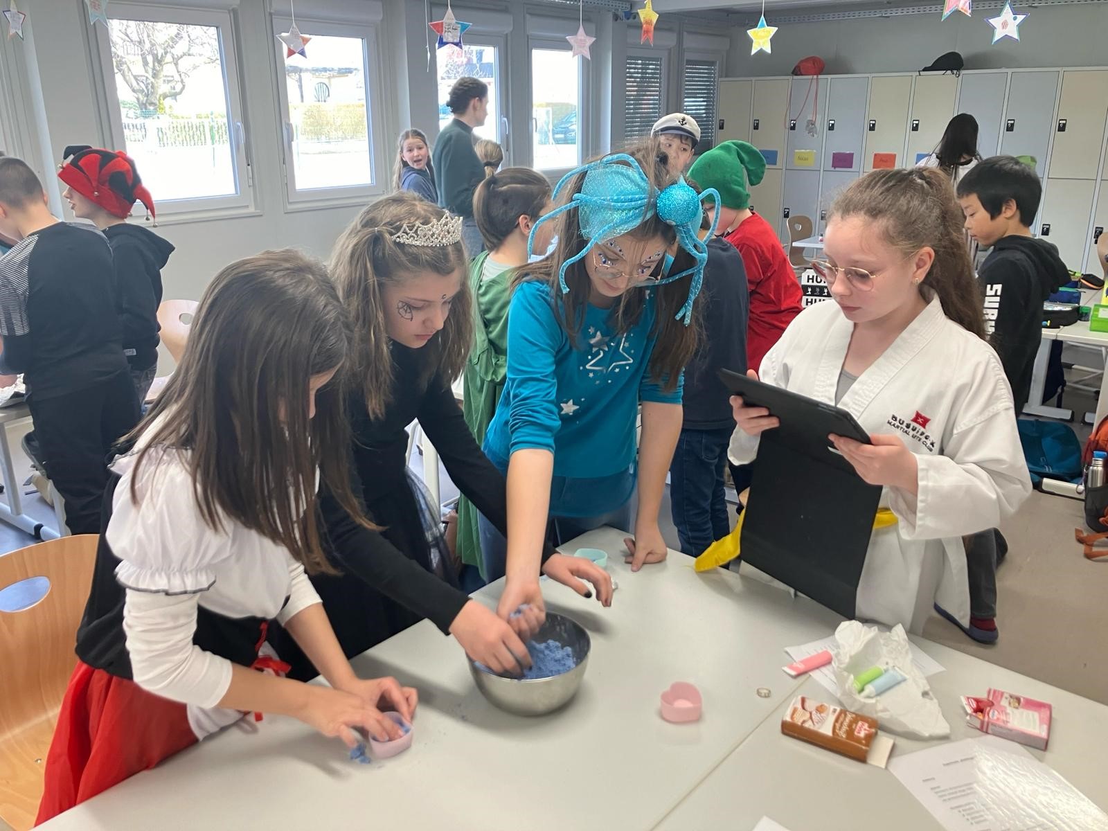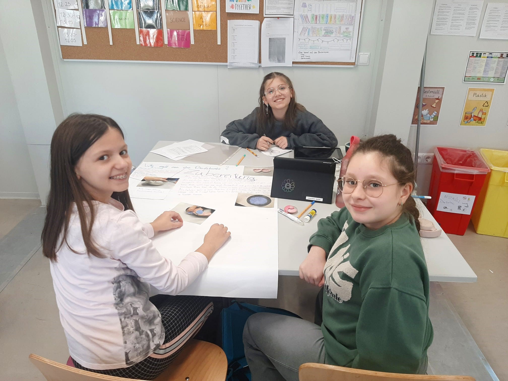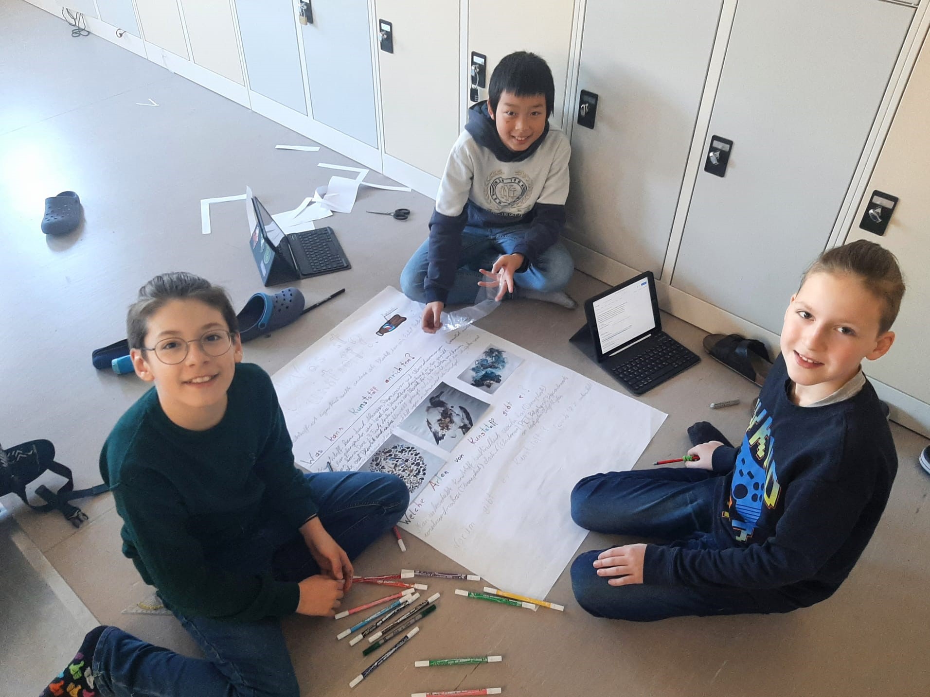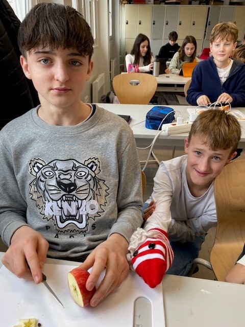 Unsere Schüler:innen der drei ersten Klassen konnten sich in unterschiedlichsten Workshops mit der Thematik auseinandersetzen. Da wurden Badebomben und Papier hergestellt, unterschiedliche Kunststoffe untersucht, Müll gesammelt und aus alten Jeans neue Topflappen gewebt. Belgeitet wurden alle Aktivitäten wieder von liebevoll selbst gebastelten Sockenpuppen, die in Videos zum Leben erweckt wurden. Mit ihren Dialogen informierten und kommentieren die „Sockis“ die neuen Erkenntnisse.