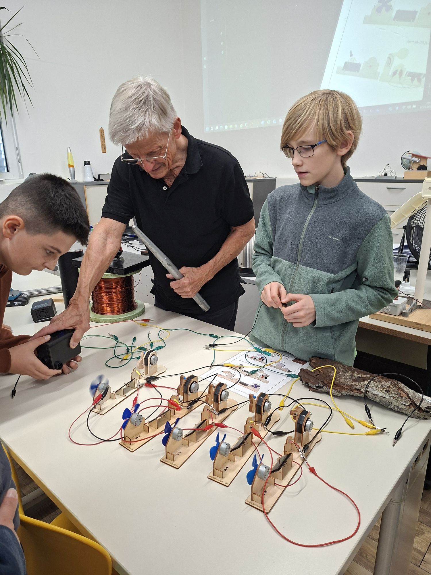 Im Zentrum stand der Workshop Green Energy, bei dem wir mithilfe spannender Experimente die verschiedenen Möglichkeiten der Stromerzeugung durch erneuerbare Energien erkundeten – Wasser-, Windkraft und Sonnenenergie.