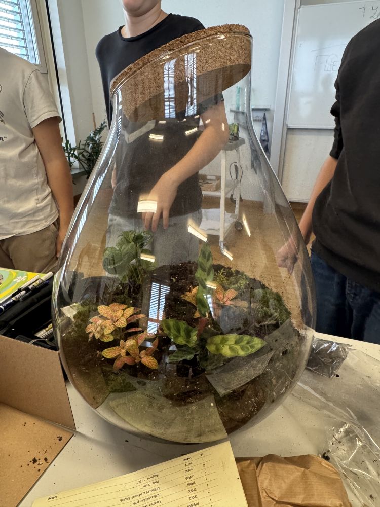 Im Rahmen des Biologieunterrichts gestaltete die 2f-Klasse einen eigenen Flaschengarten, um die Funktionsweise eines geschlossenen Ökosystems hautnah zu erleben. Ziel des Projekts war es, zu verstehen, wie Kreisläufe auch in einem kleinen, abgeschlossenen Raum funktionieren können.