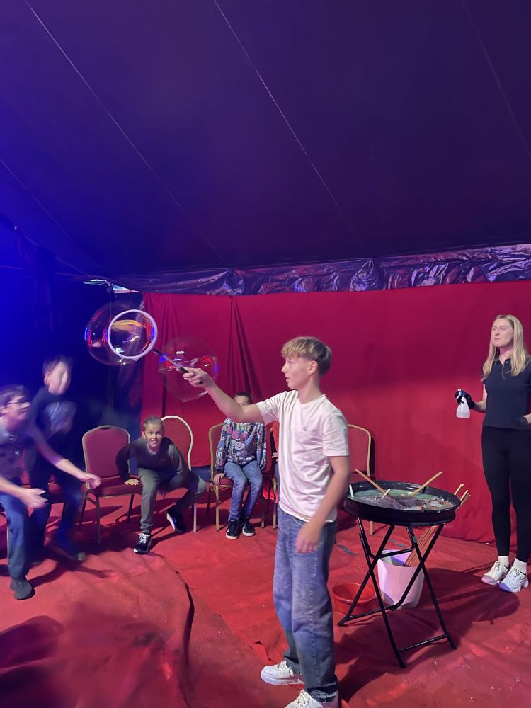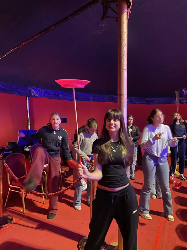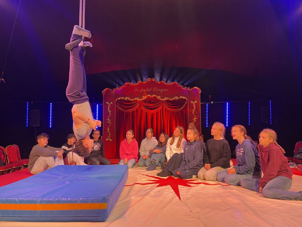 Am Freitag vor den Herbstferien unternahmen die 3. Klassen einen Ausflug zum Zirkuszelt der Zirkuswelt Graz in der Nähe des Weblinger Kreisverkehrs. Dort stellten erfahrene Artist:innen ihre verschiedenen Arbeitsbereiche vor und gaben spannende Einblicke in die Welt des Zirkus. Im Rahmen eines zweistündigen Workshops konnten die Schüler:innen selbst aktiv werden und unterschiedliche artistische Disziplinen wie Trapez, Seiltanz, Seifenblasenkunst und Clownerie ausprobieren. Der Besuch bot eine gelungene Mischung aus Bewegung und Spaß – und sorgte für einen abwechslungsreichen Start in die Ferien.